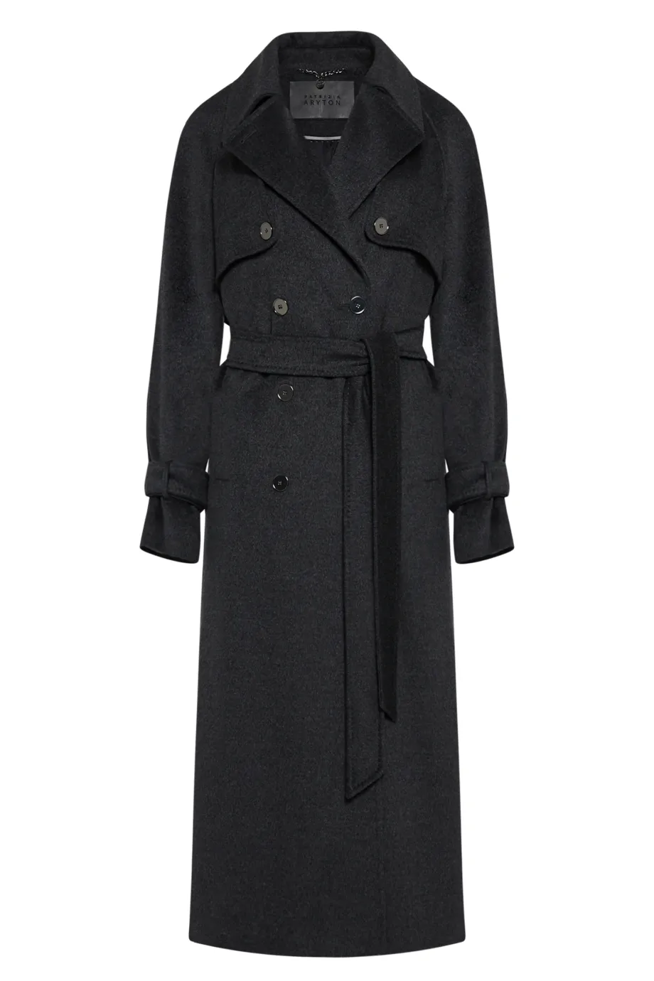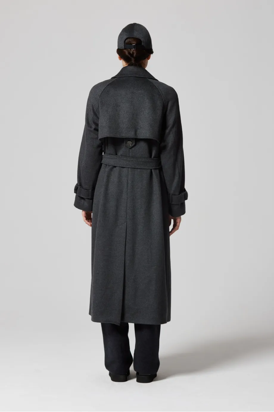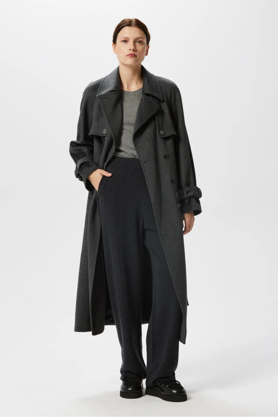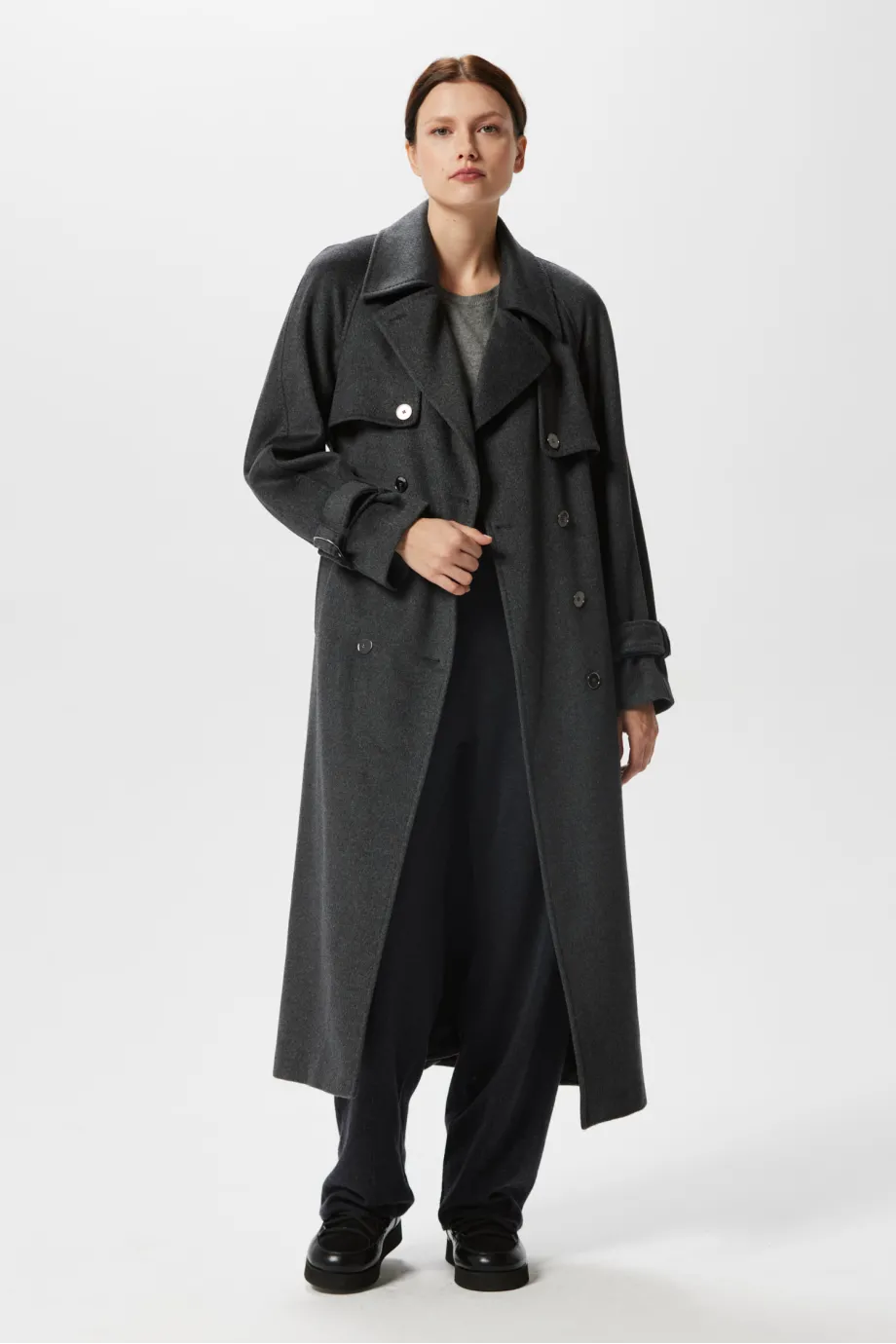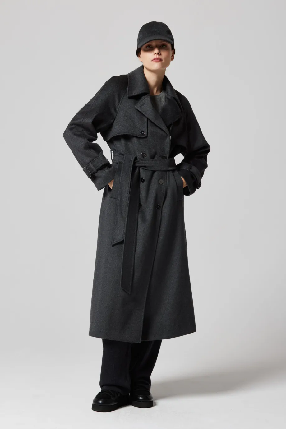 Szary wełniany trencz z jedwabiem i kaszmirem