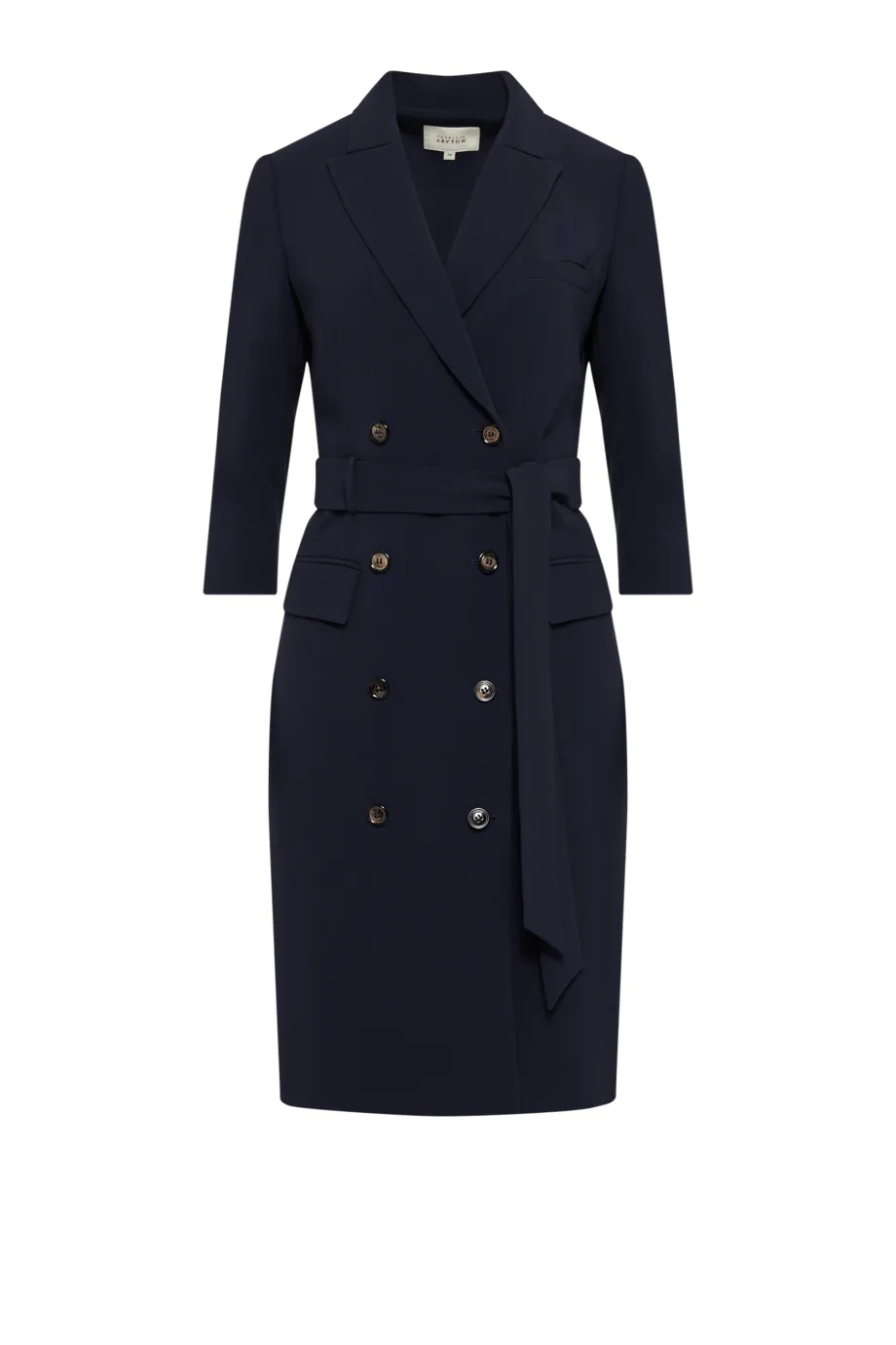 Sukienka dwurzędowa z paskiem ma taliowany fason i długość do kolan. Rękawy ¾ wykończono delikatnym rozcięciem i wyrazistymi guzikami, które są jednym z wiodących motywów najnowszej kolekcji.