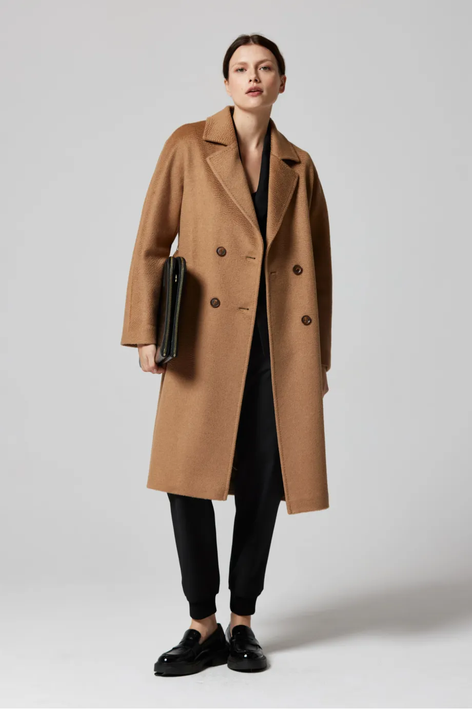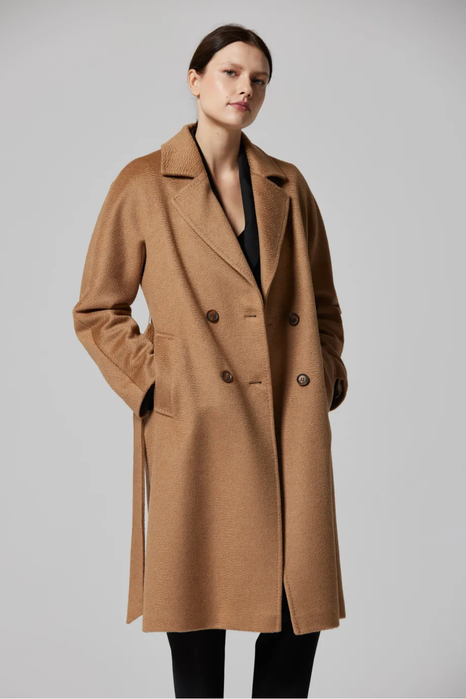 - Płaszcz w kolorze camel wykonany ze 100% wełny wielbłądziej