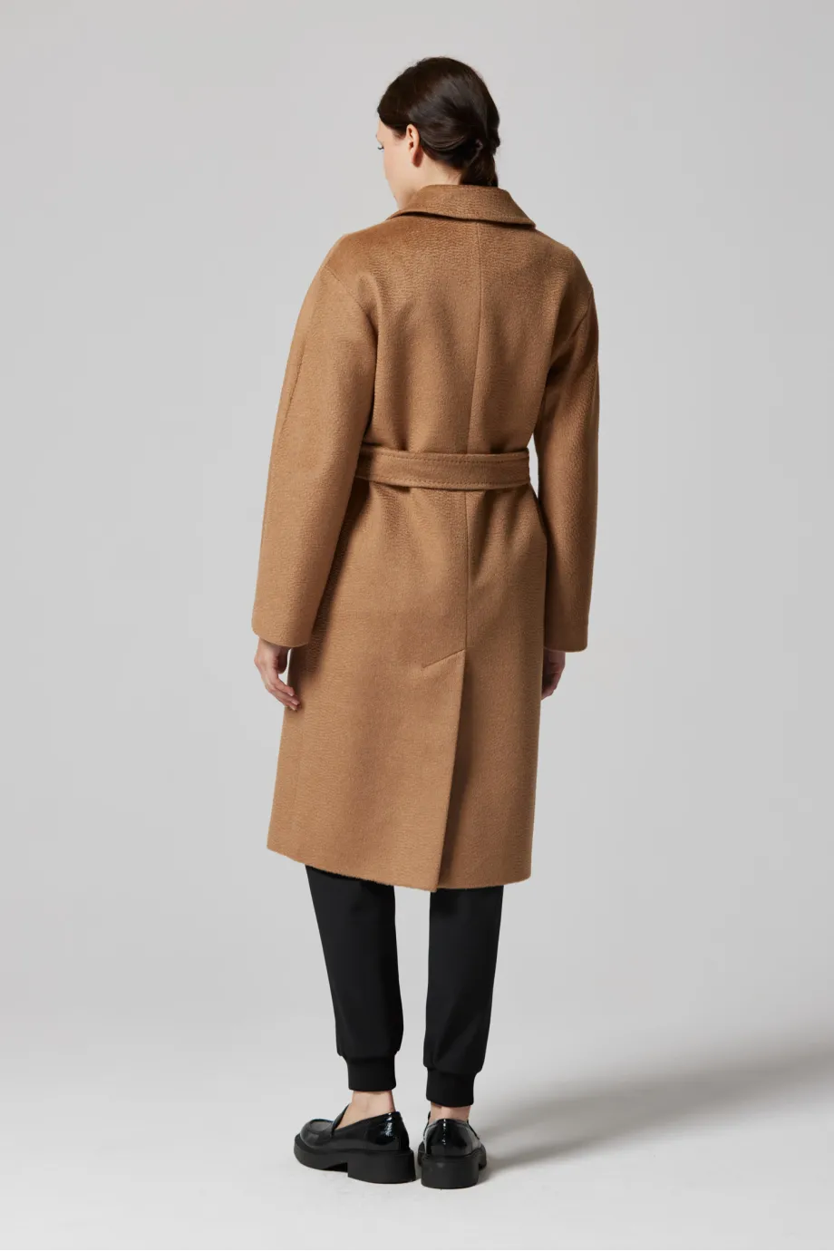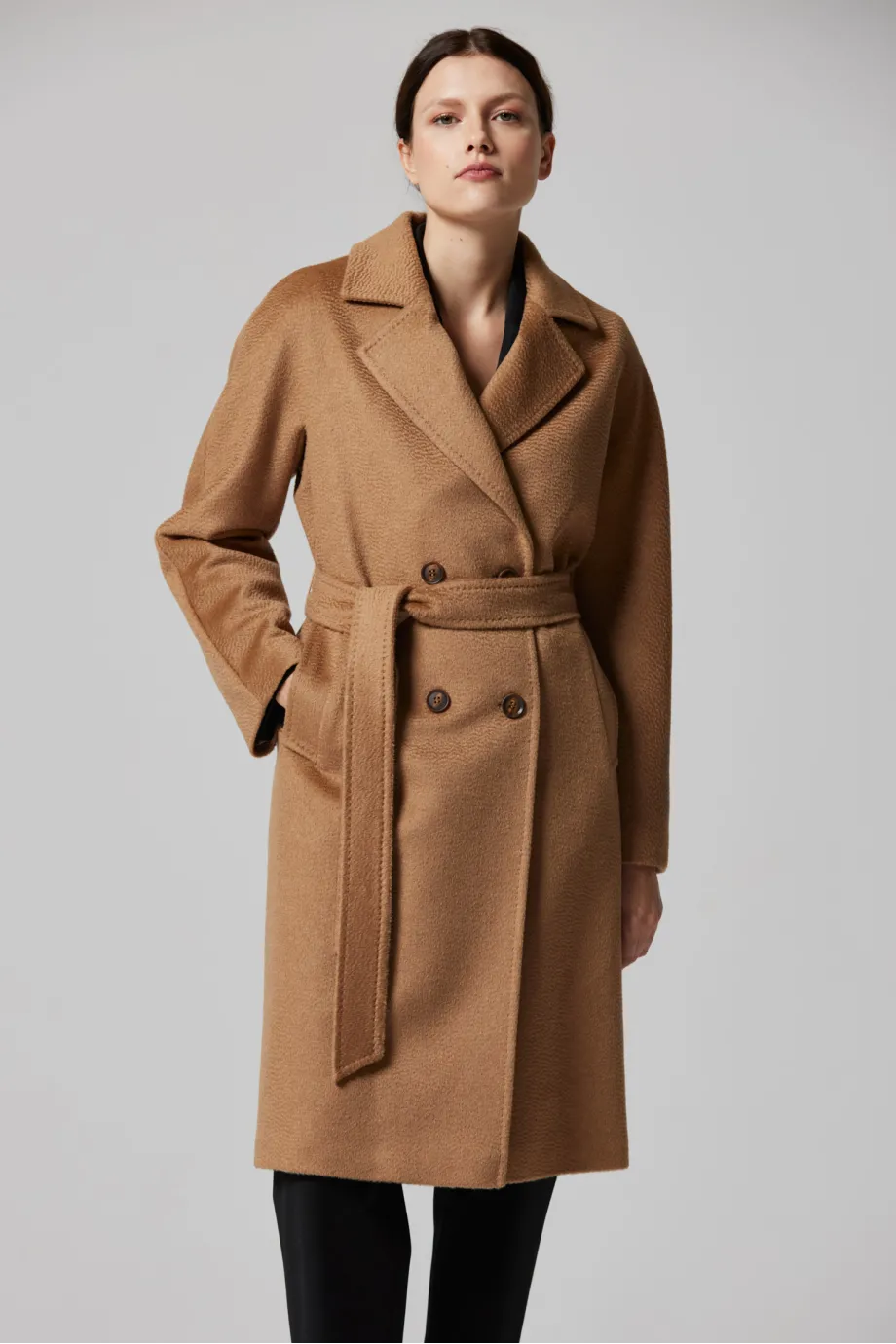 Wełniany płaszcz z paskiem 100% wełna wielbłądzia