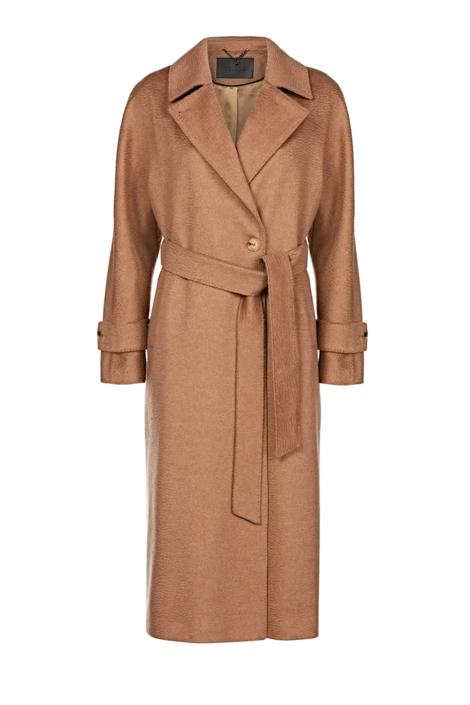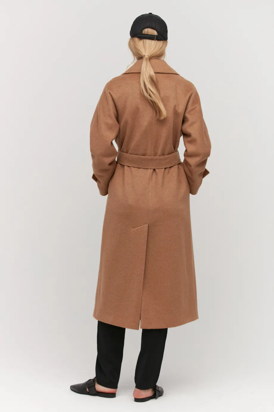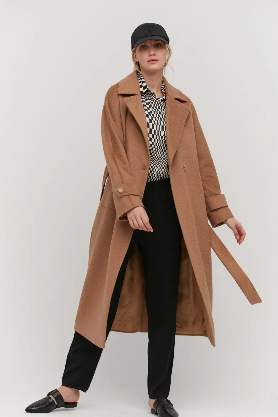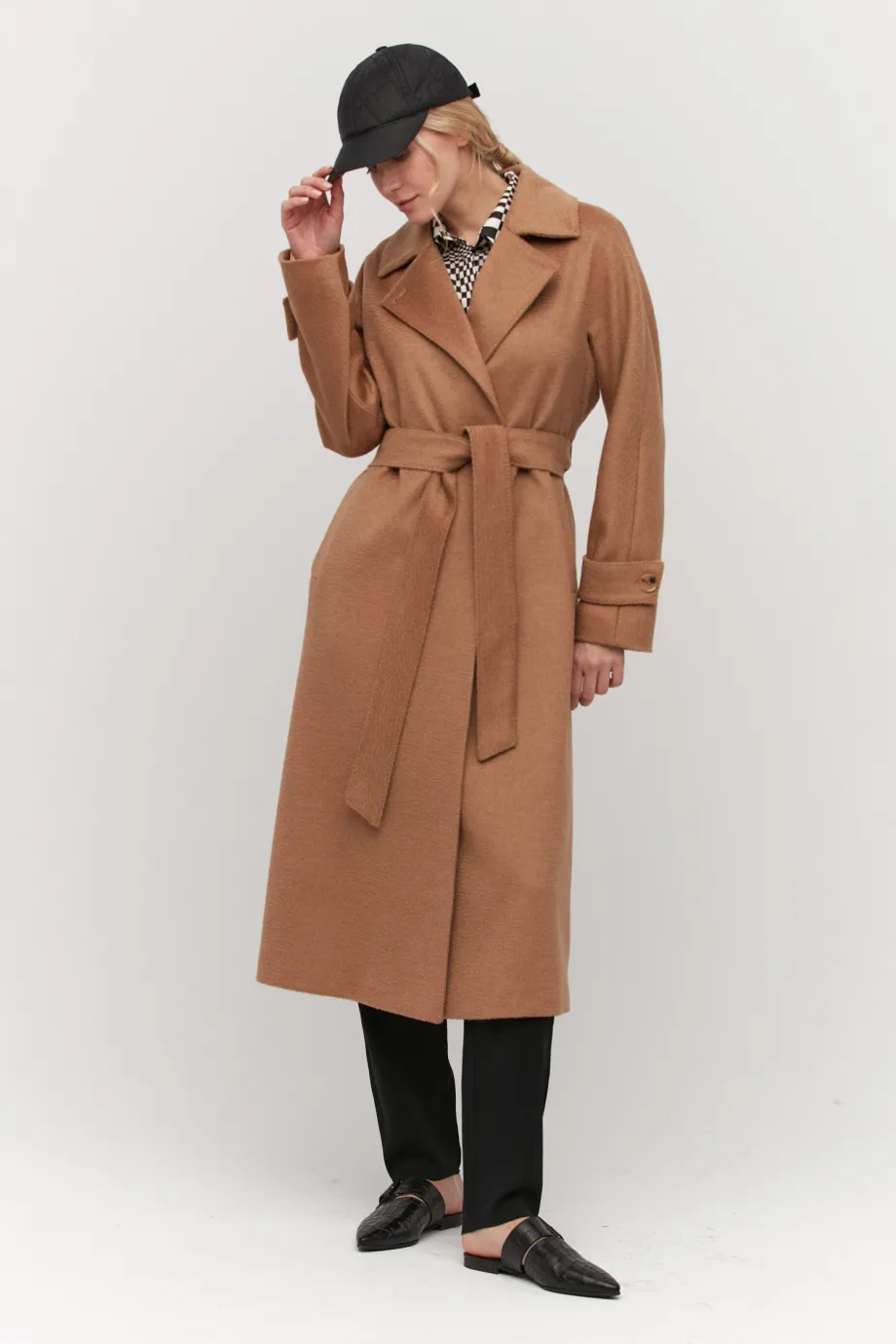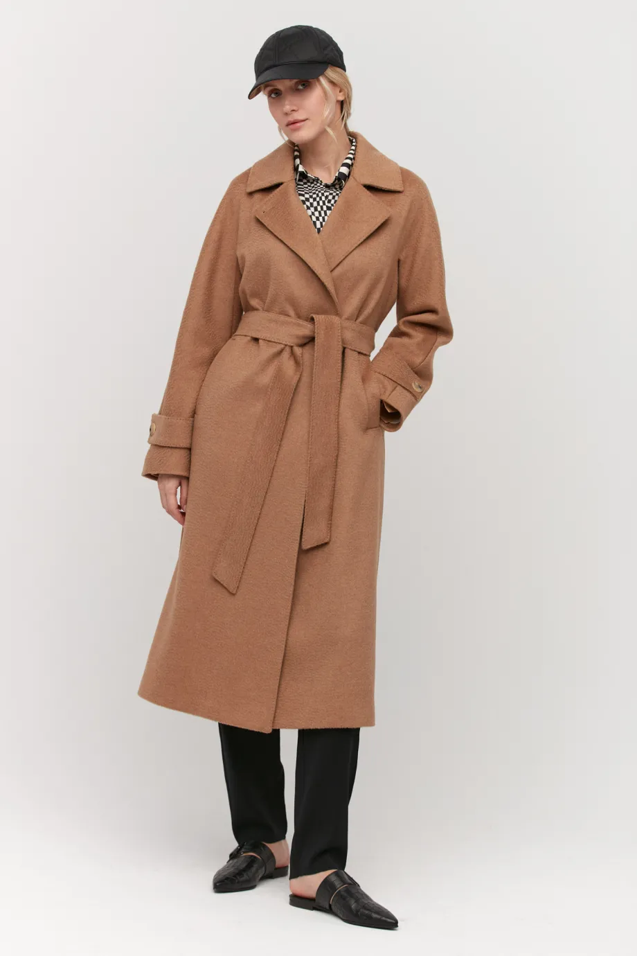 Wełniany płaszcz z paskiem z wełny wielbłądziej