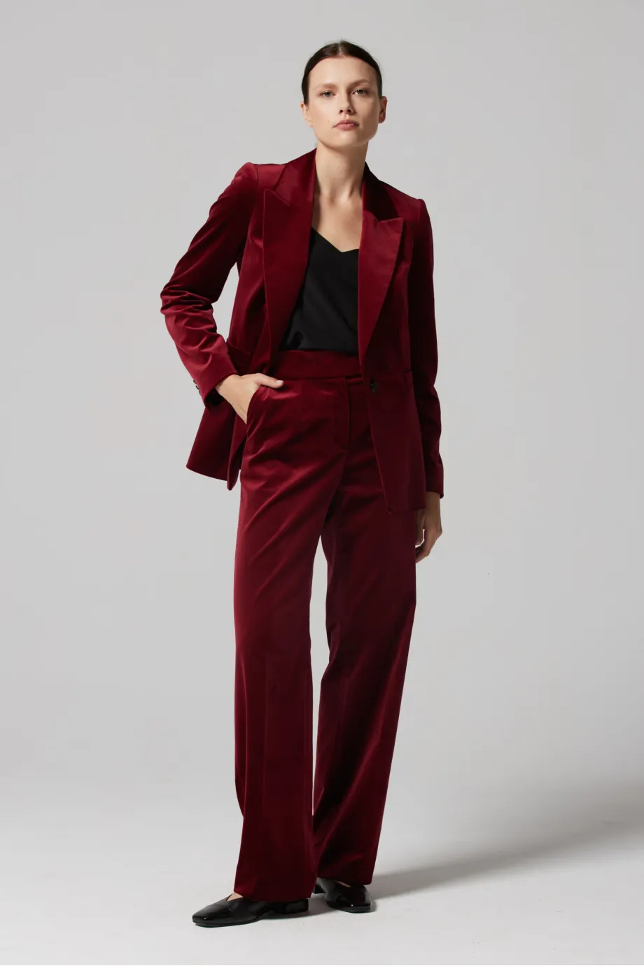 Bordowe aksamitne spodnie garniturowe z kieszeniami
