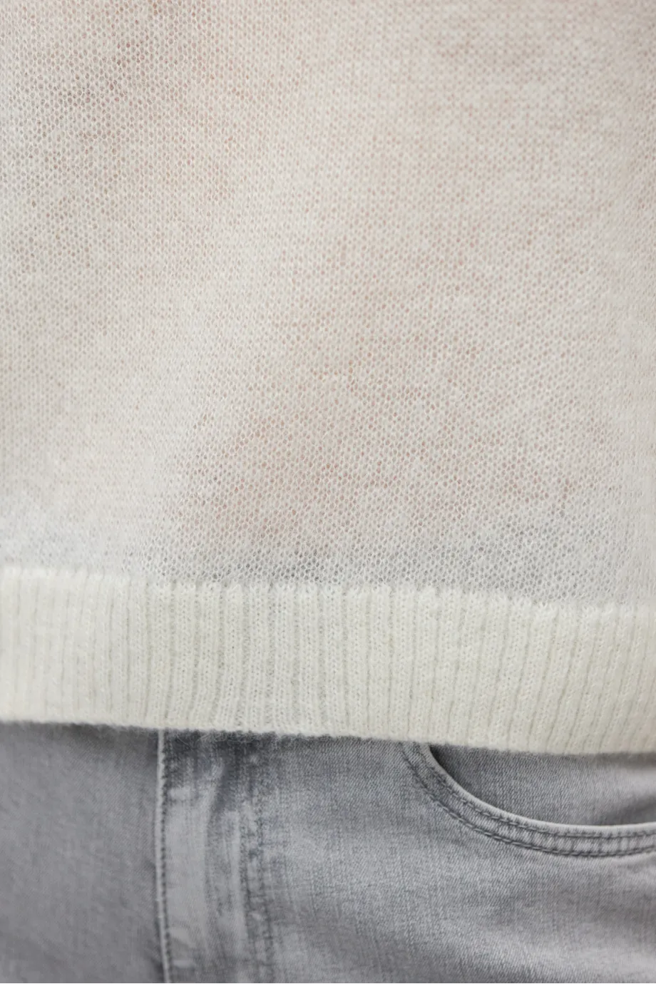 - Miękka dzianina z wełną baby alpaki, luźny splot jersey stitch połączony z rib 2x2, wykonany na maszynie o uigleniu 5 GG