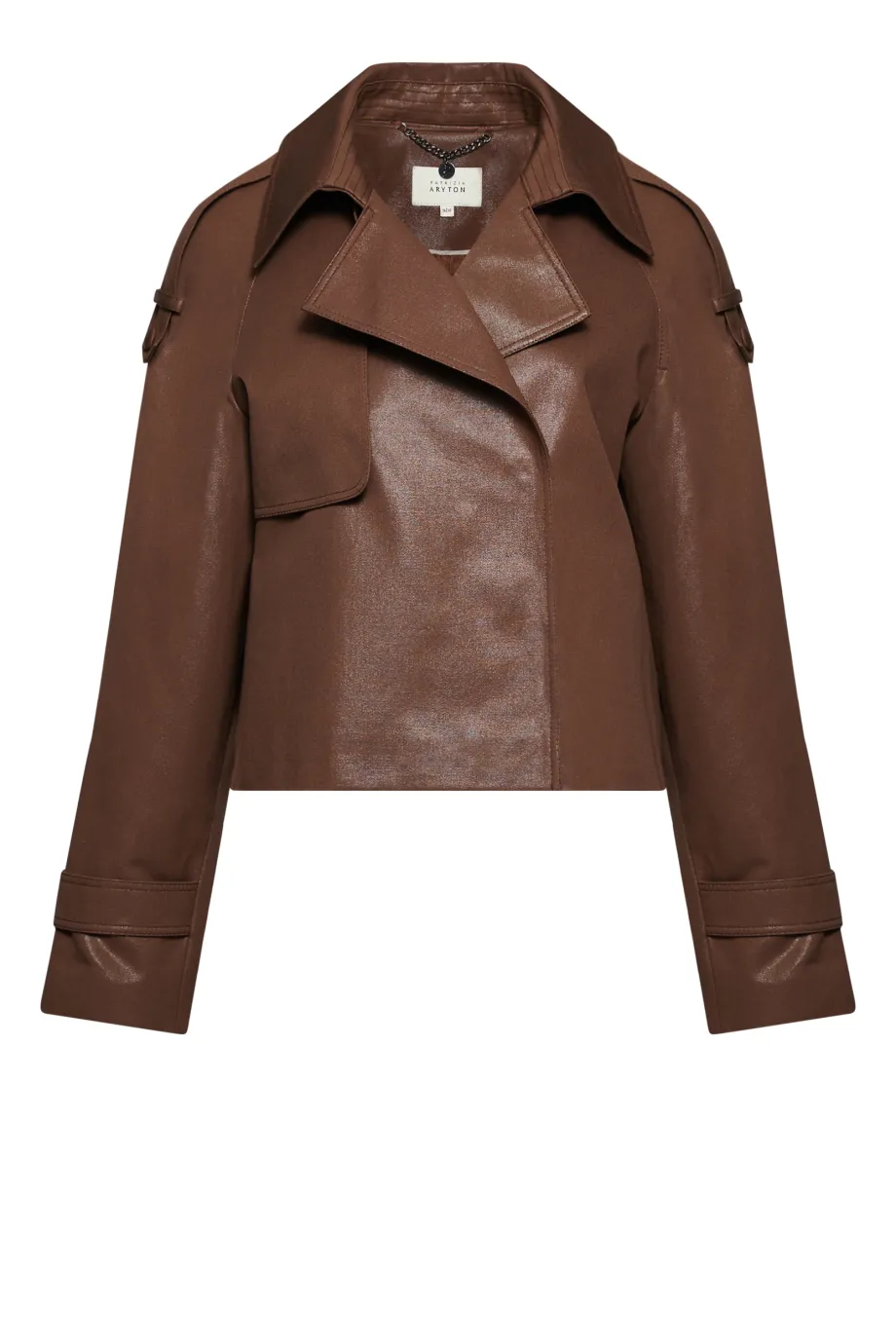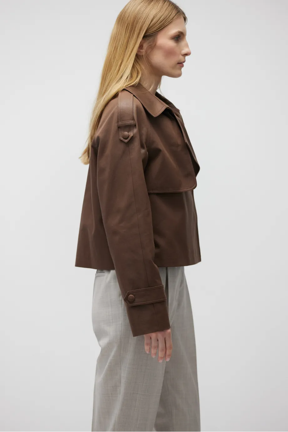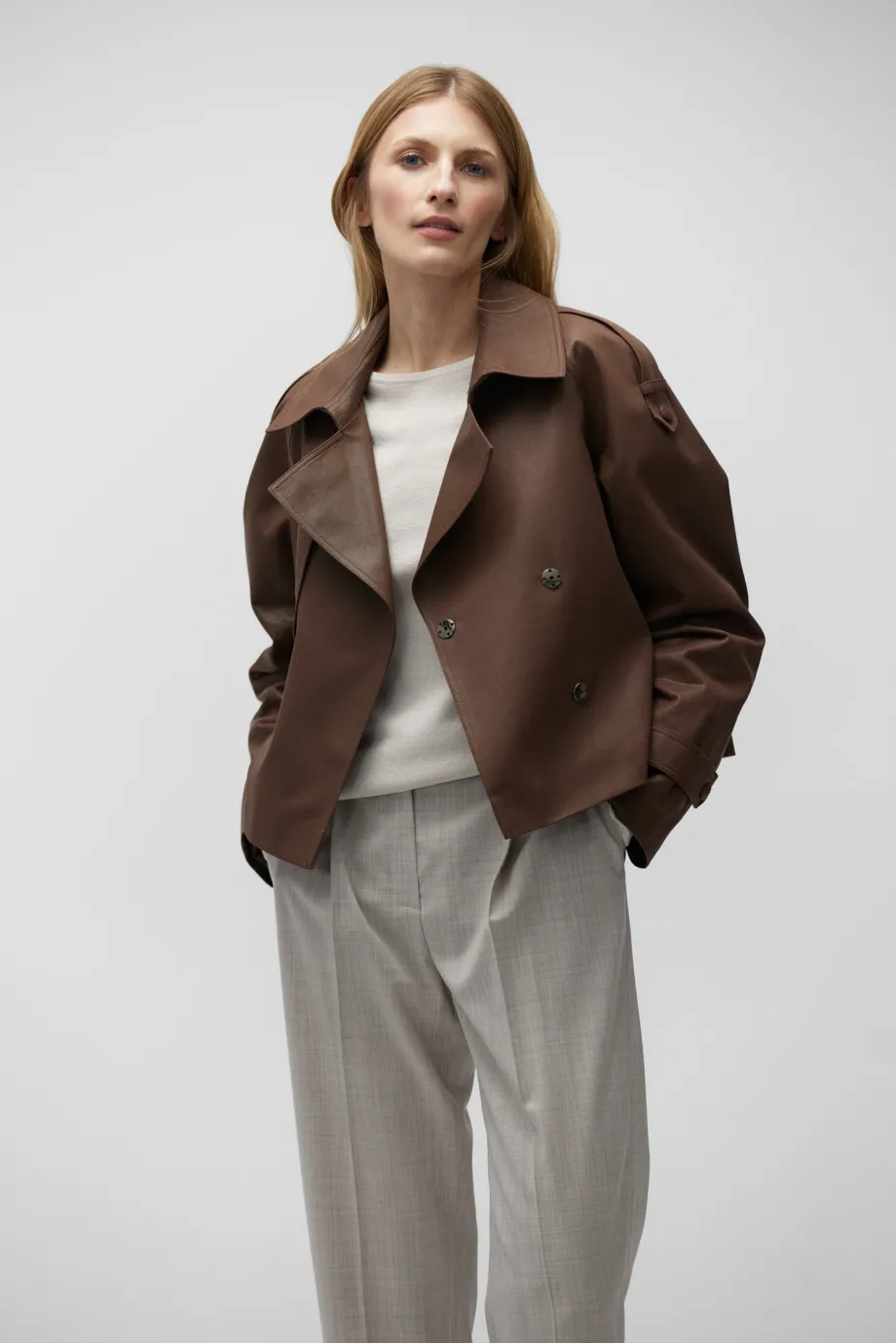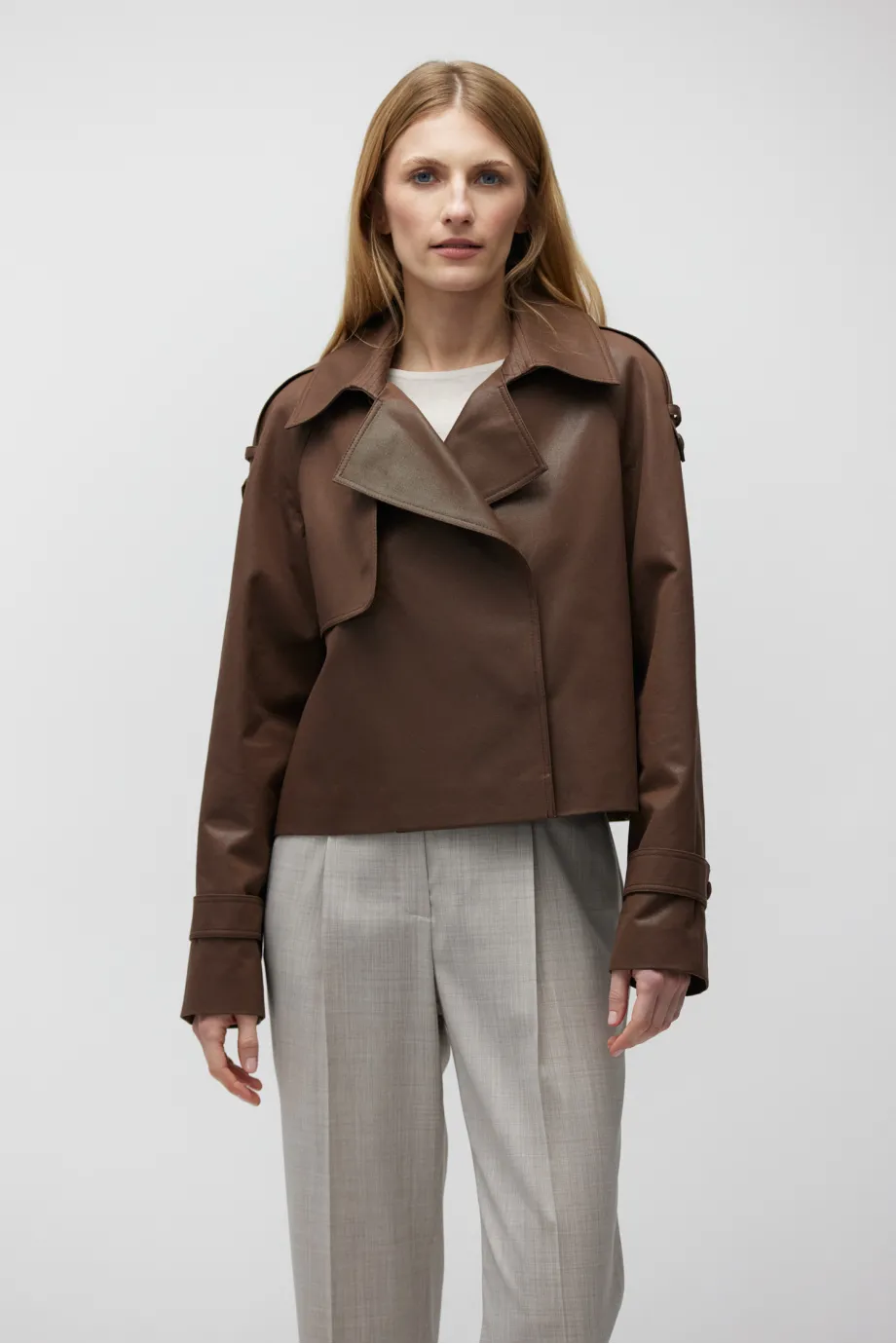 - Krótka bawełniana kurtka w kolorze czekoladowym