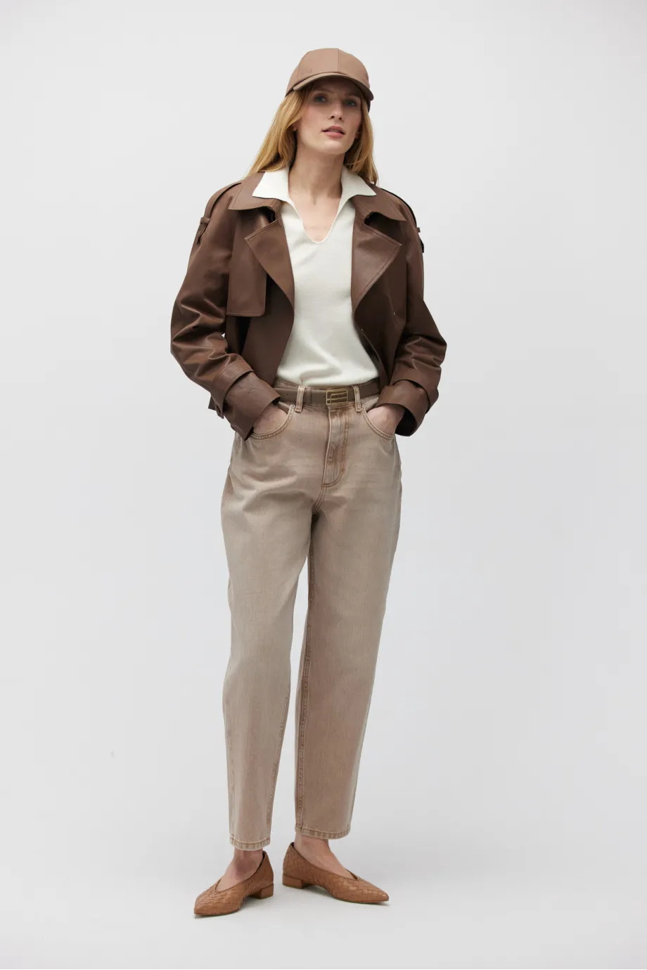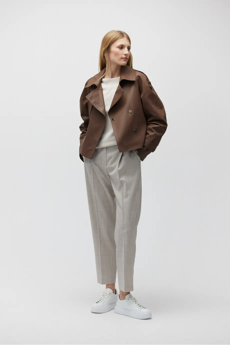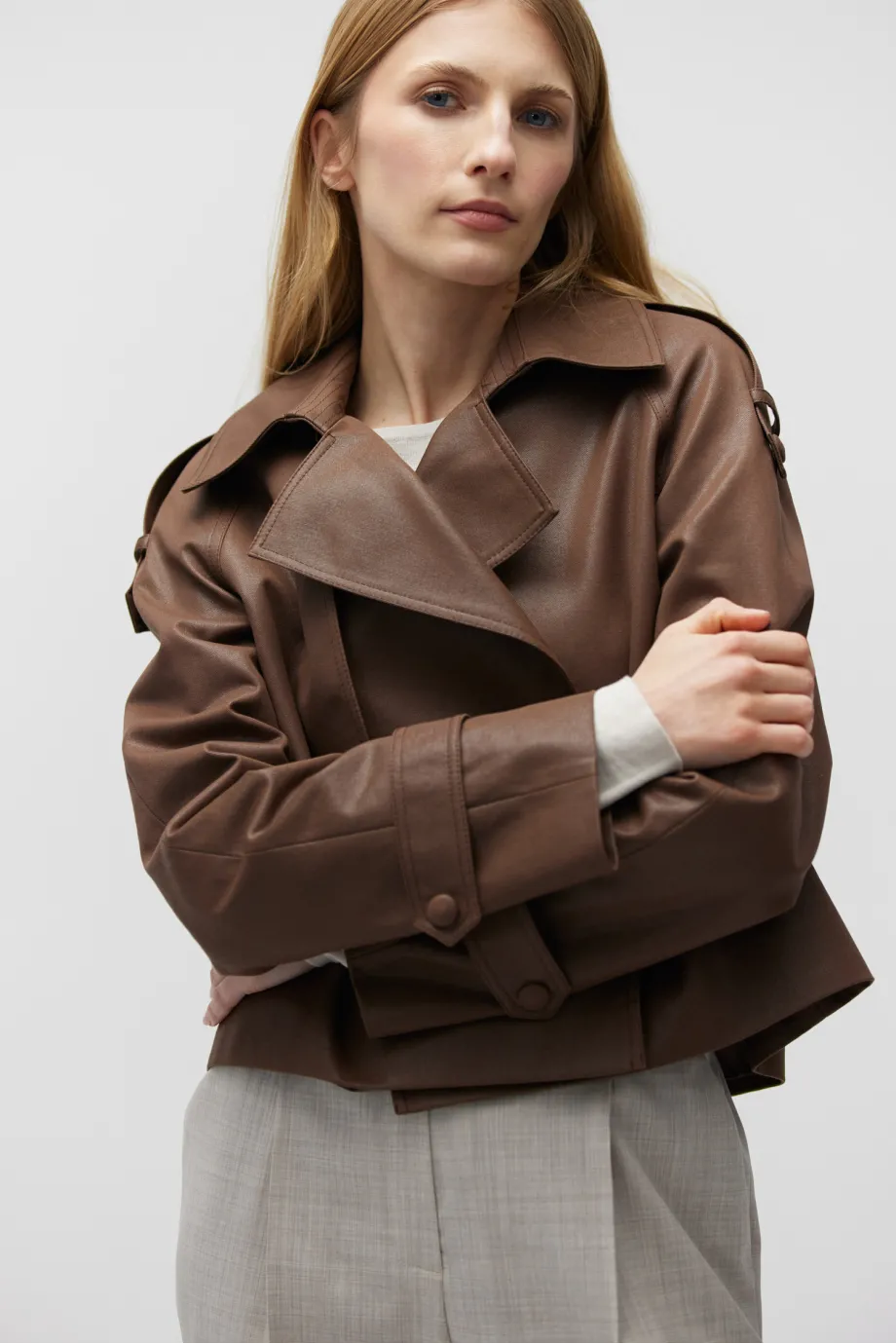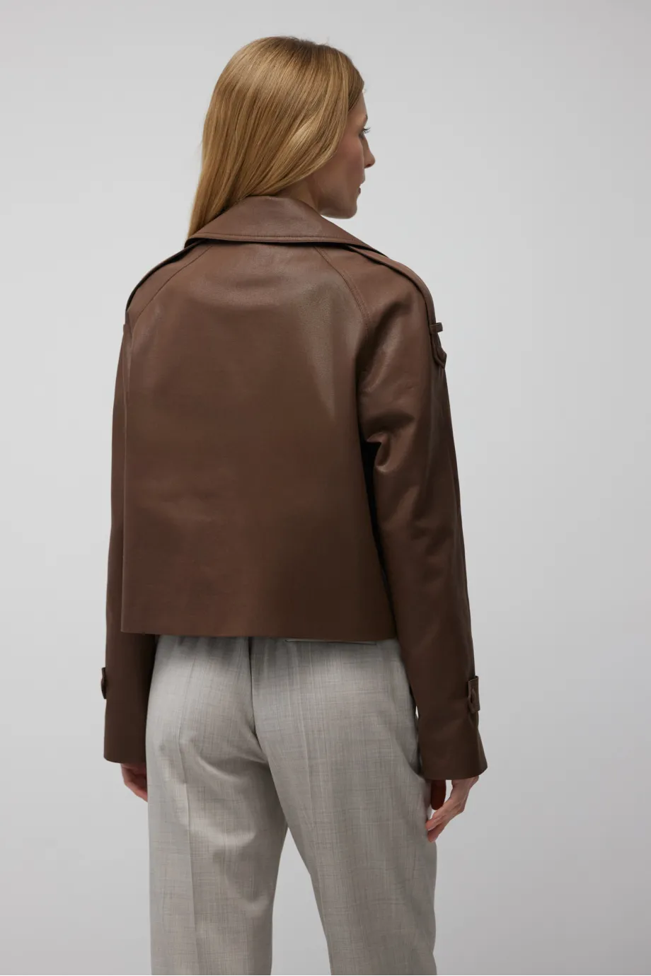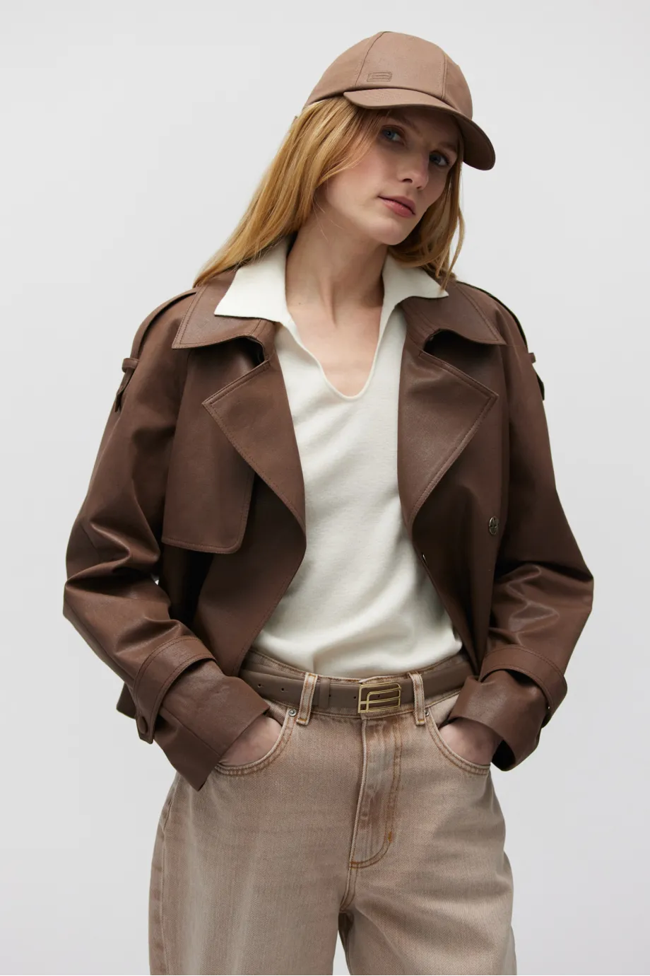 - Krótka bawełniana kurtka w kolorze czekoladowym