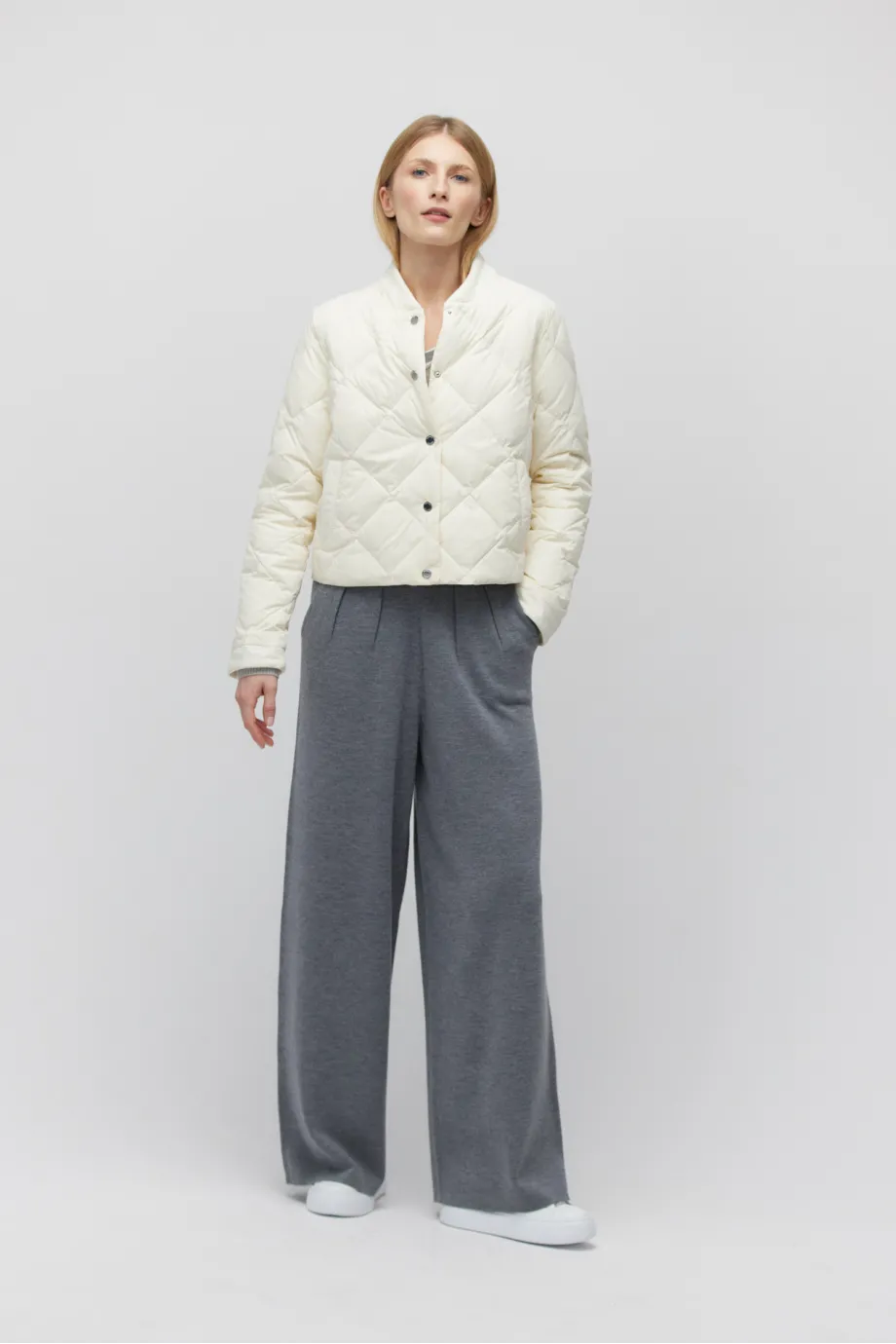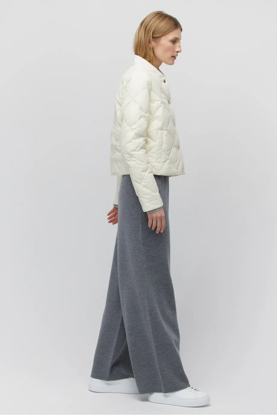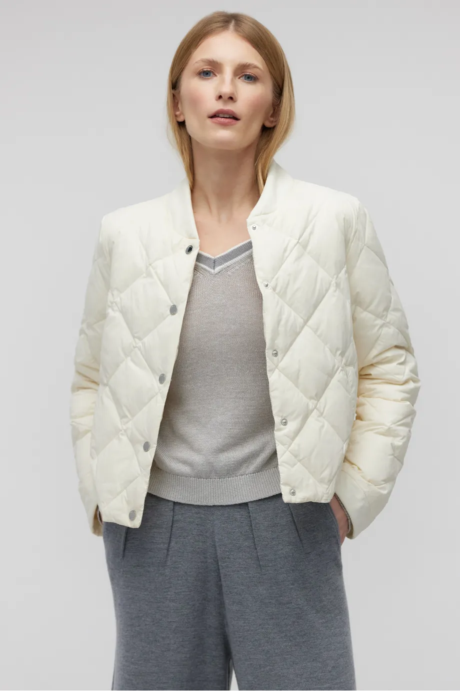 - Krótka kurtka w kolorze śmietankowej bieli, z naturalnym puchowym wypełnieniem