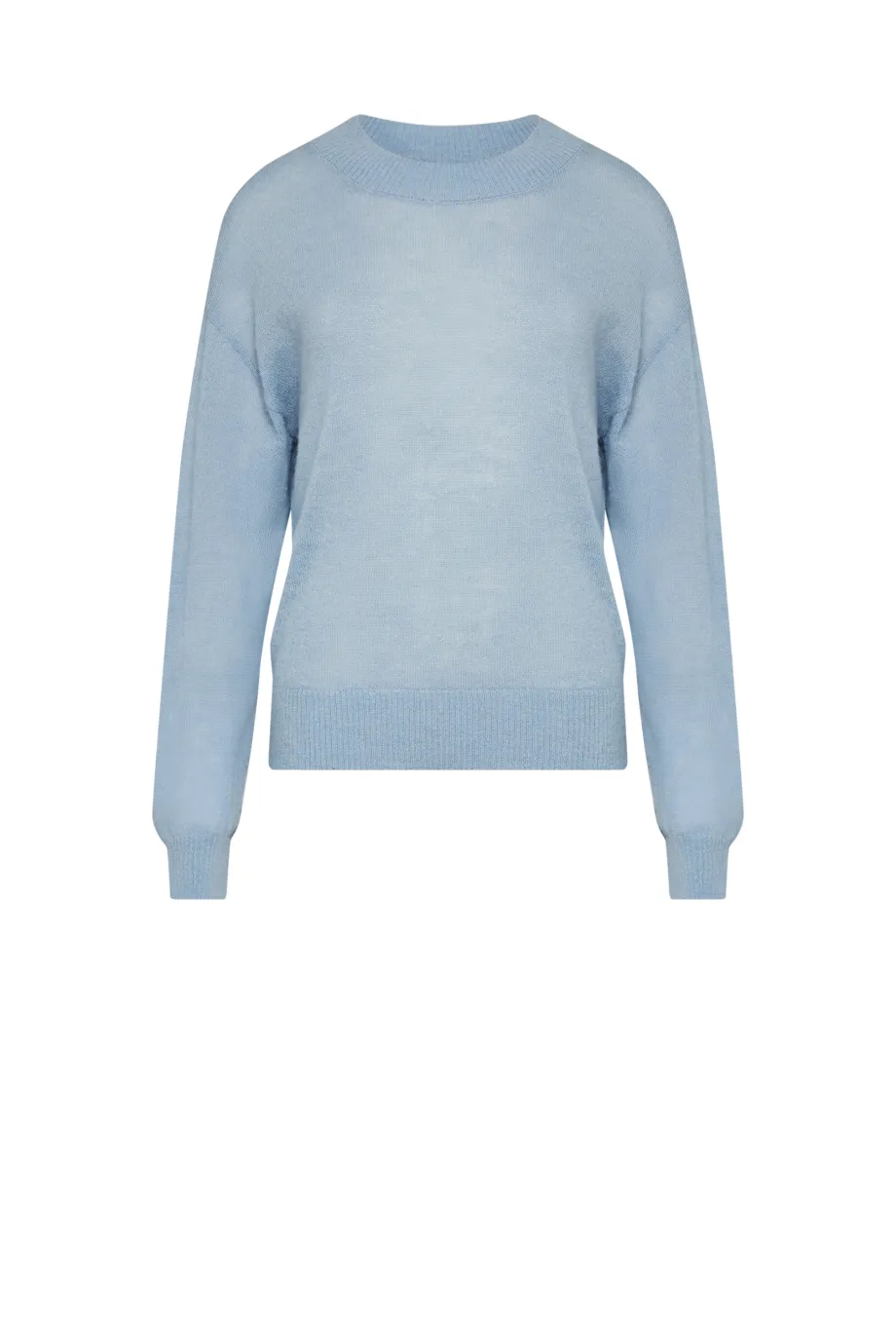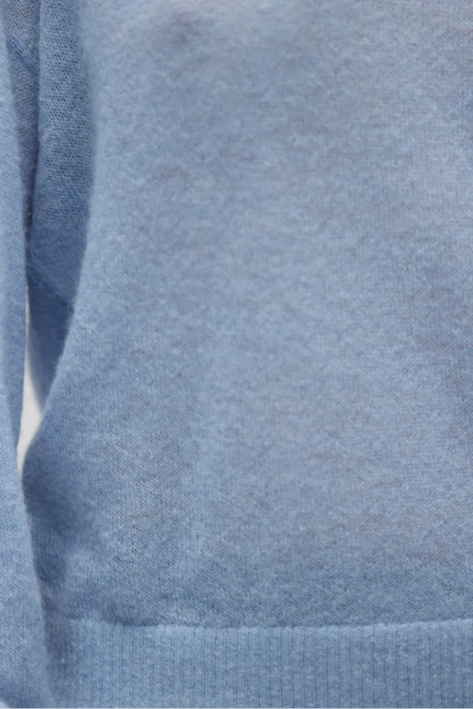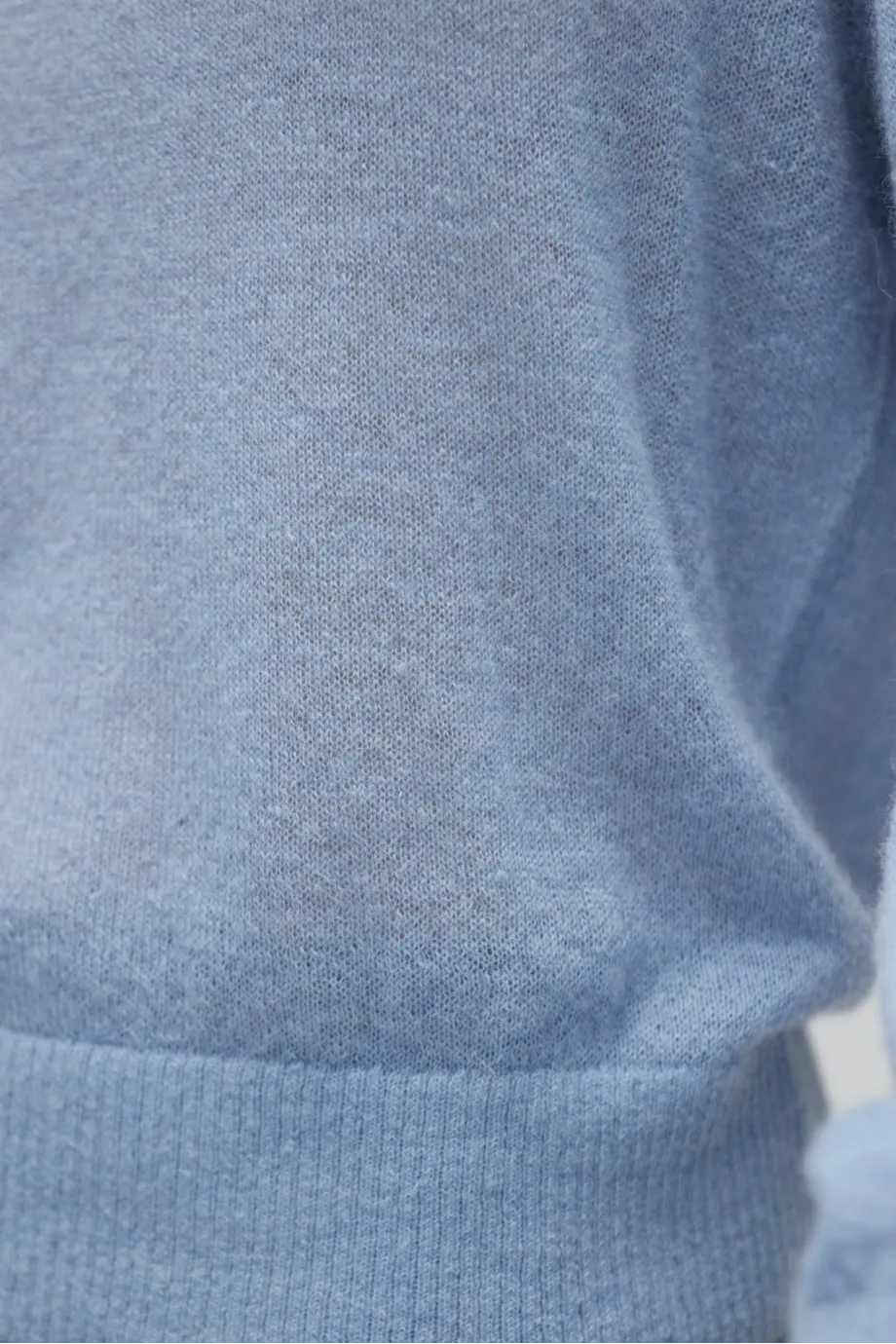 - Błękitna bluzka z wełną alpaki, z długim rękawem i okrągłym dekoltem