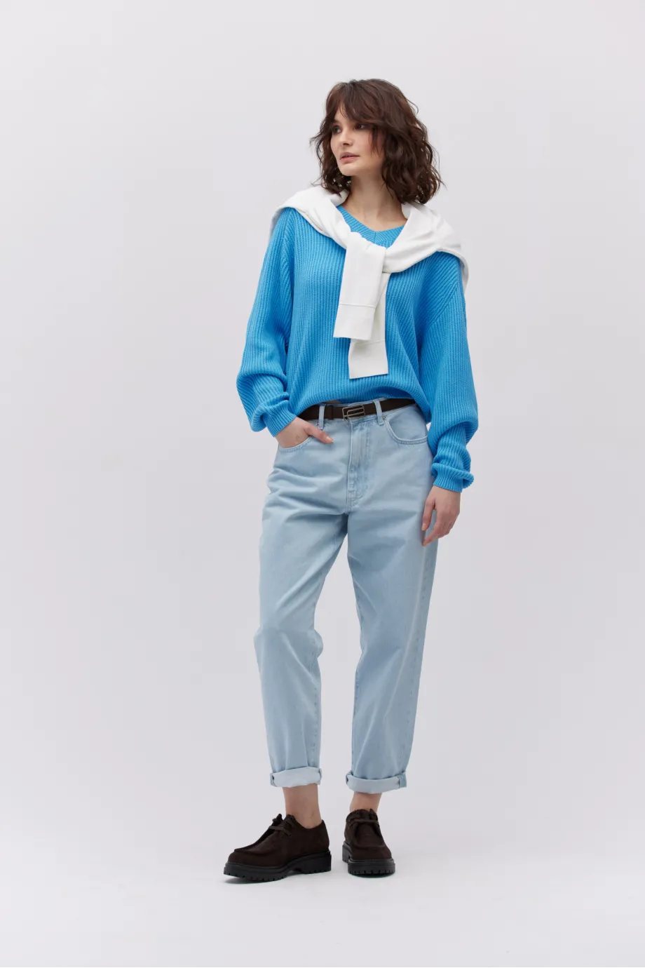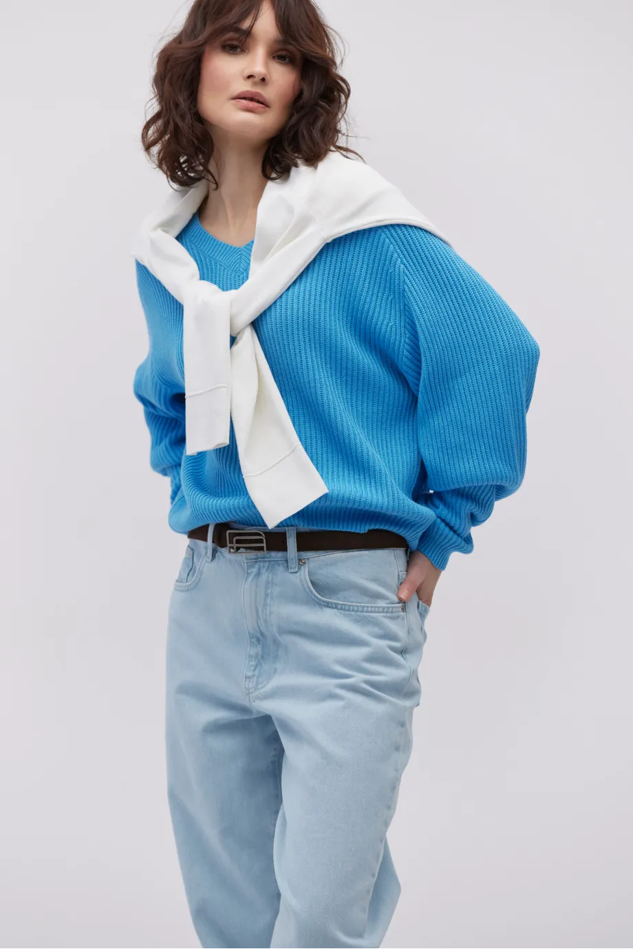- Dzianinowy sweter z jedwabiem w kolorze Blue Lagoon