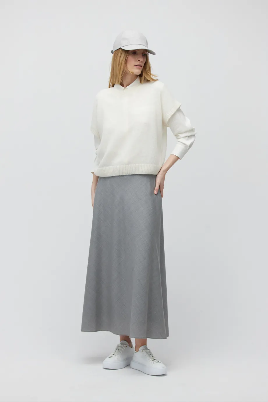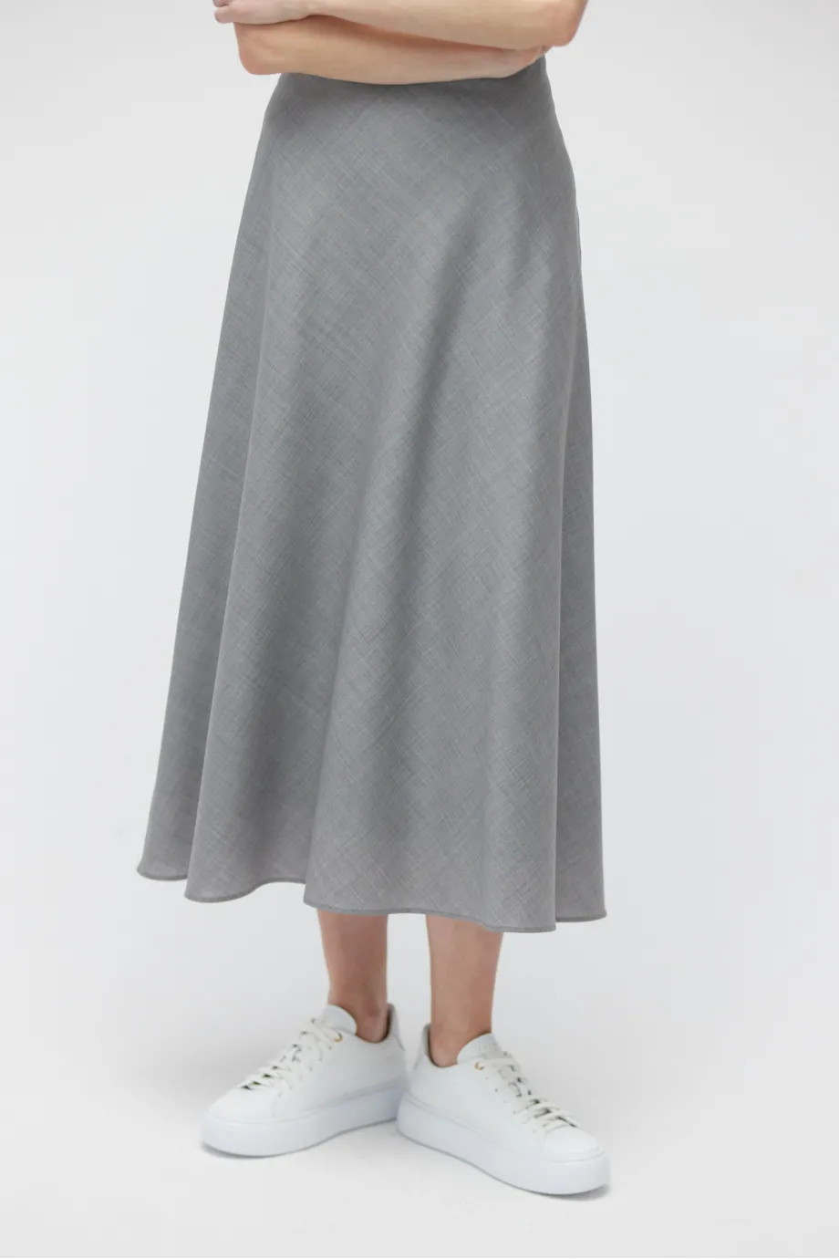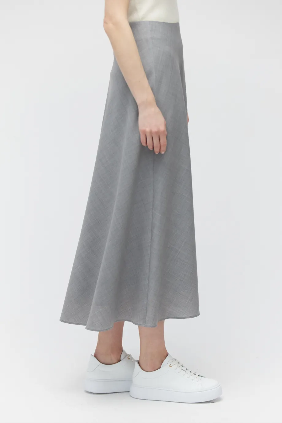 - Szara wełniana spódnica model Vivian o rozkloszowanym kroju