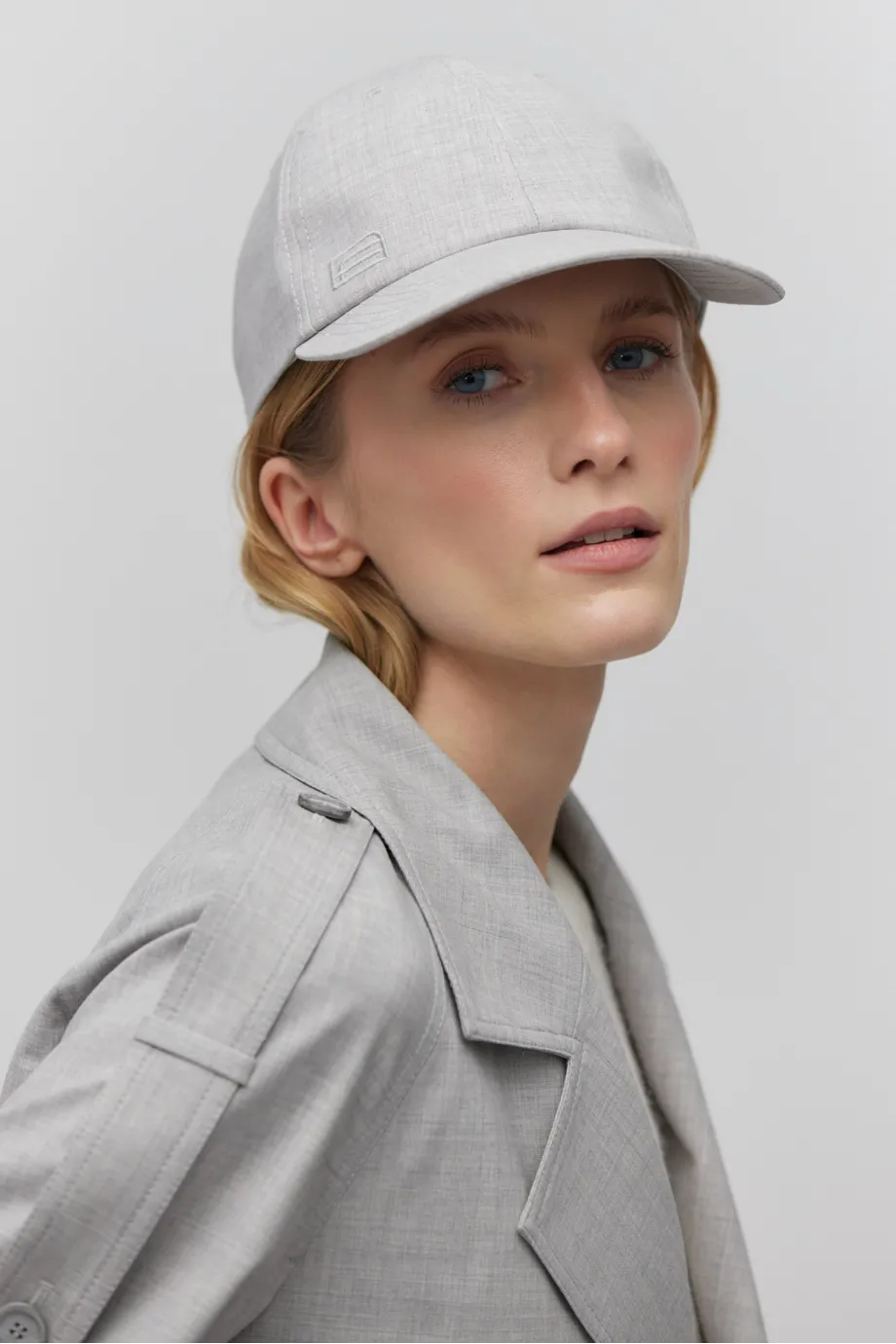 - Czapka z daszkiem z wysokiej jakości wełny w szarym kolorze, z logo Patrizia Aryton