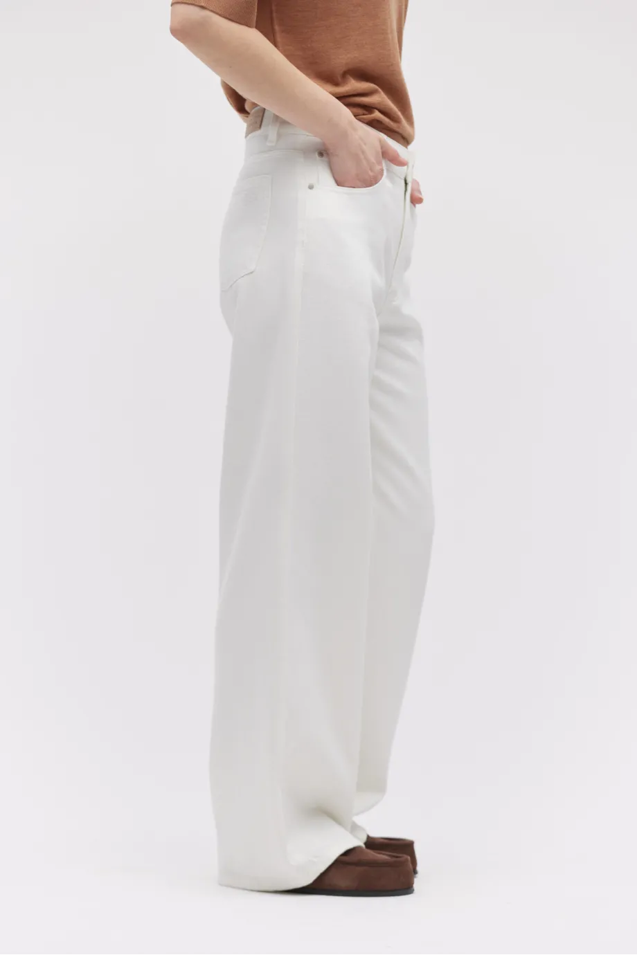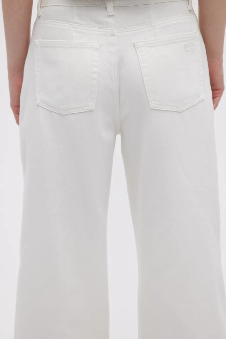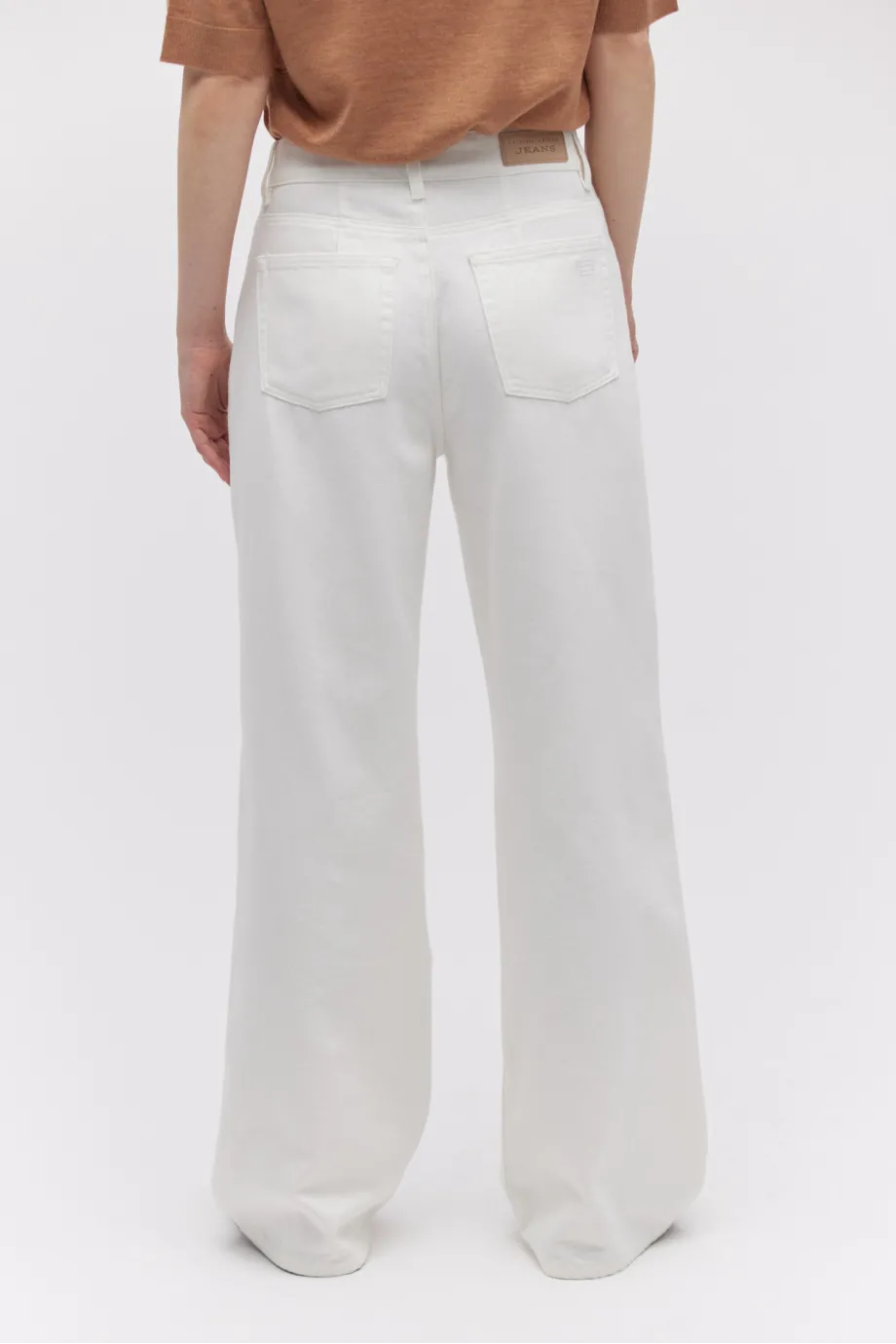 - Białe jeansy z lyocellem o szerokiej nogawce.