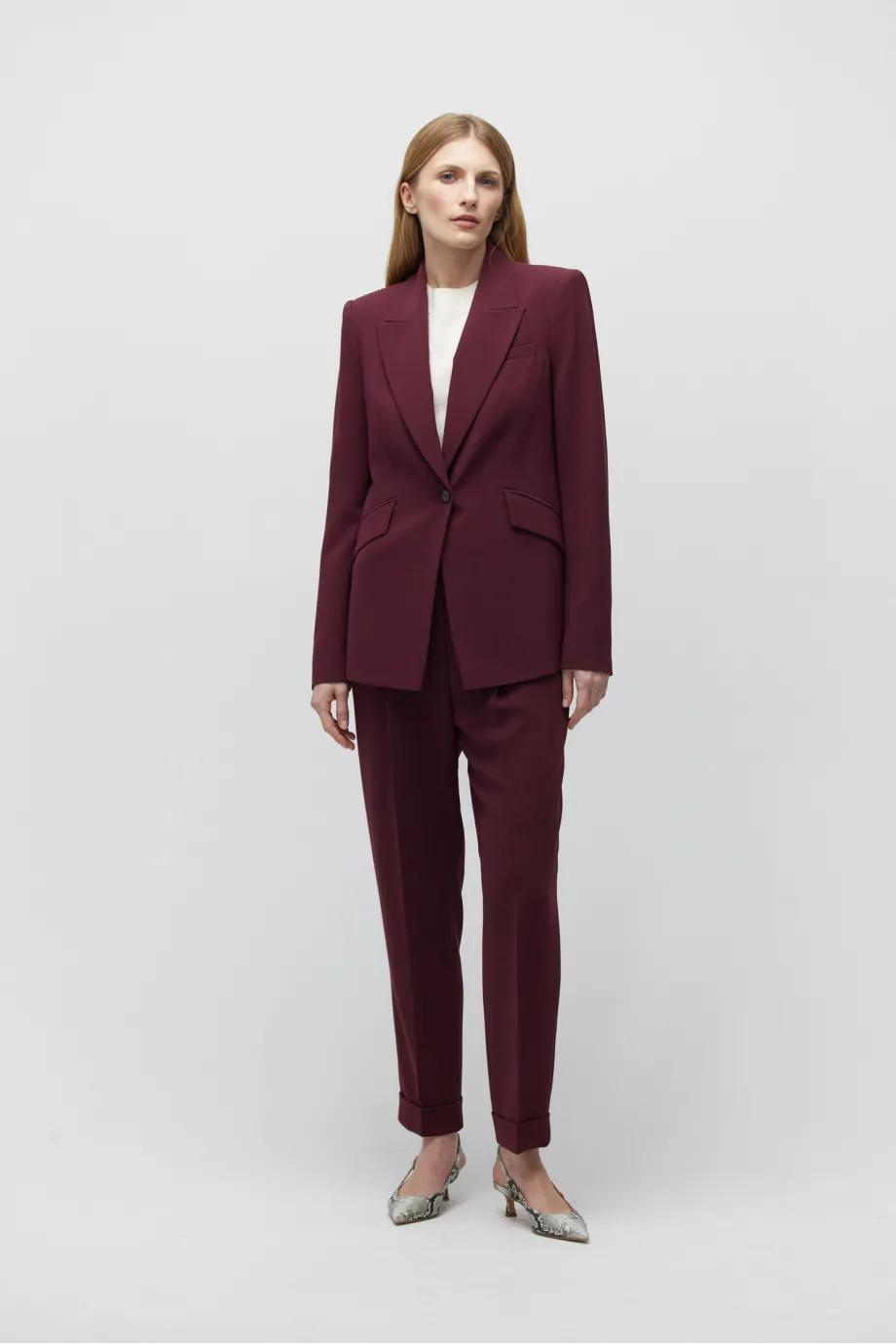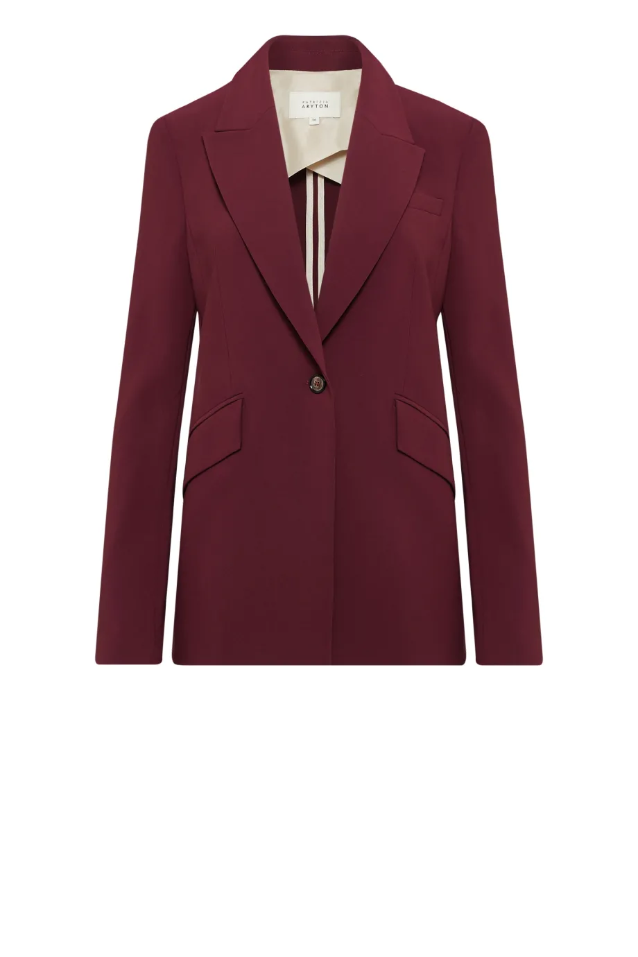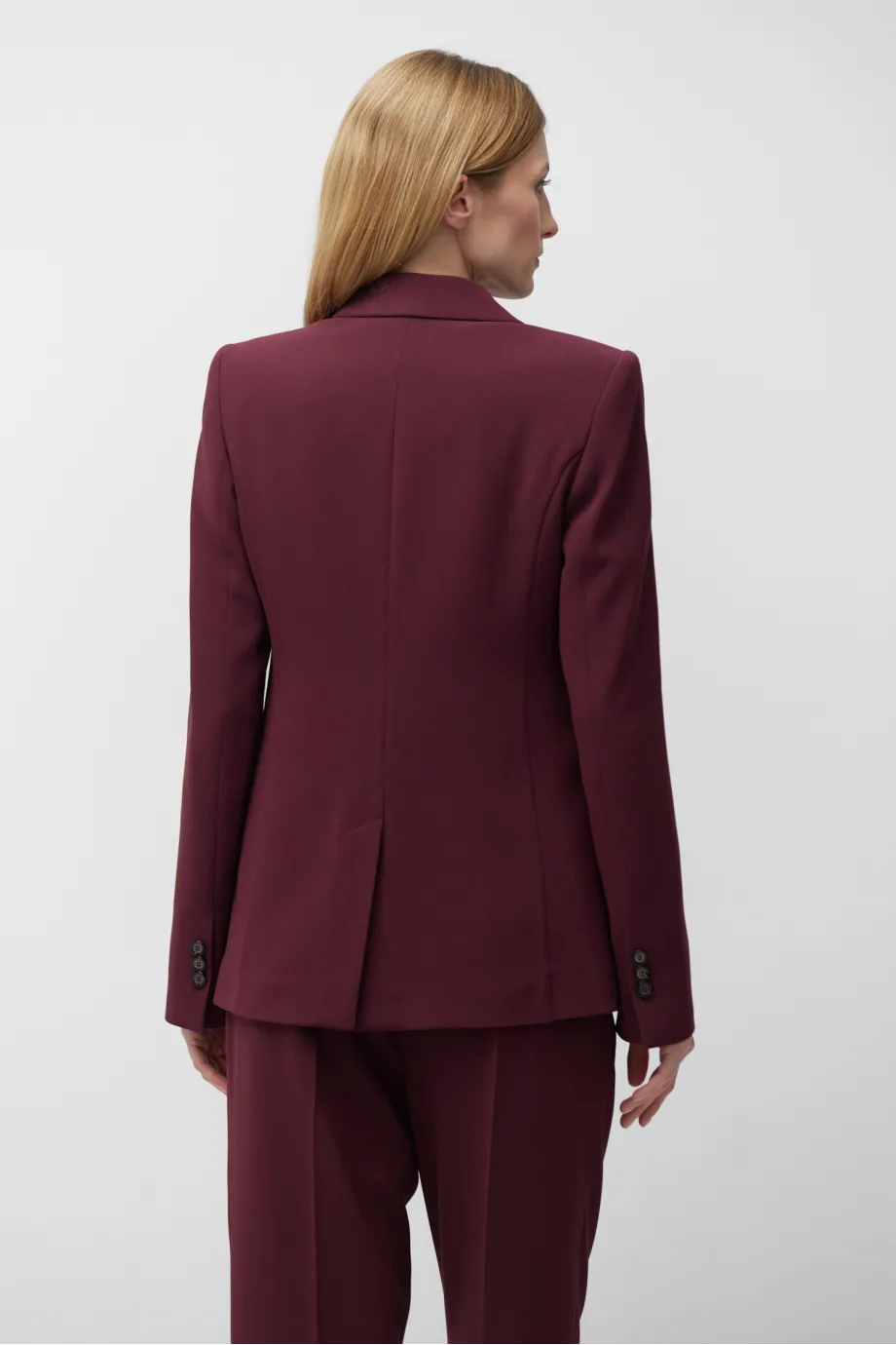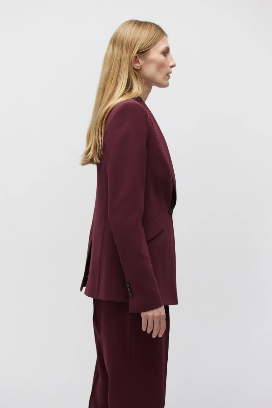 - Taliowany żakiet w kolorze plum berry, z podkreśloną linią ramion, wykonany z tkaniny z triacetatem.