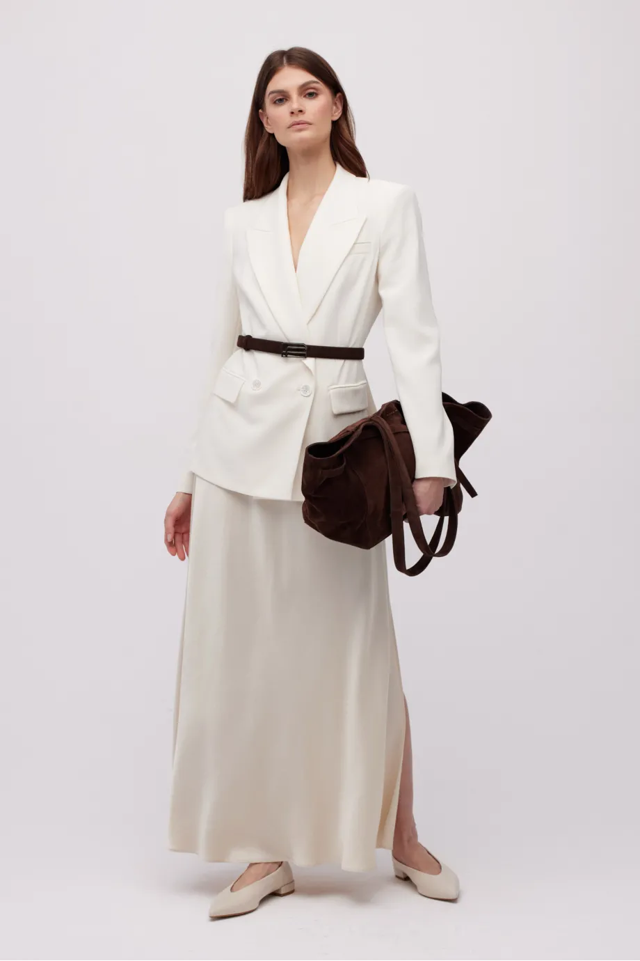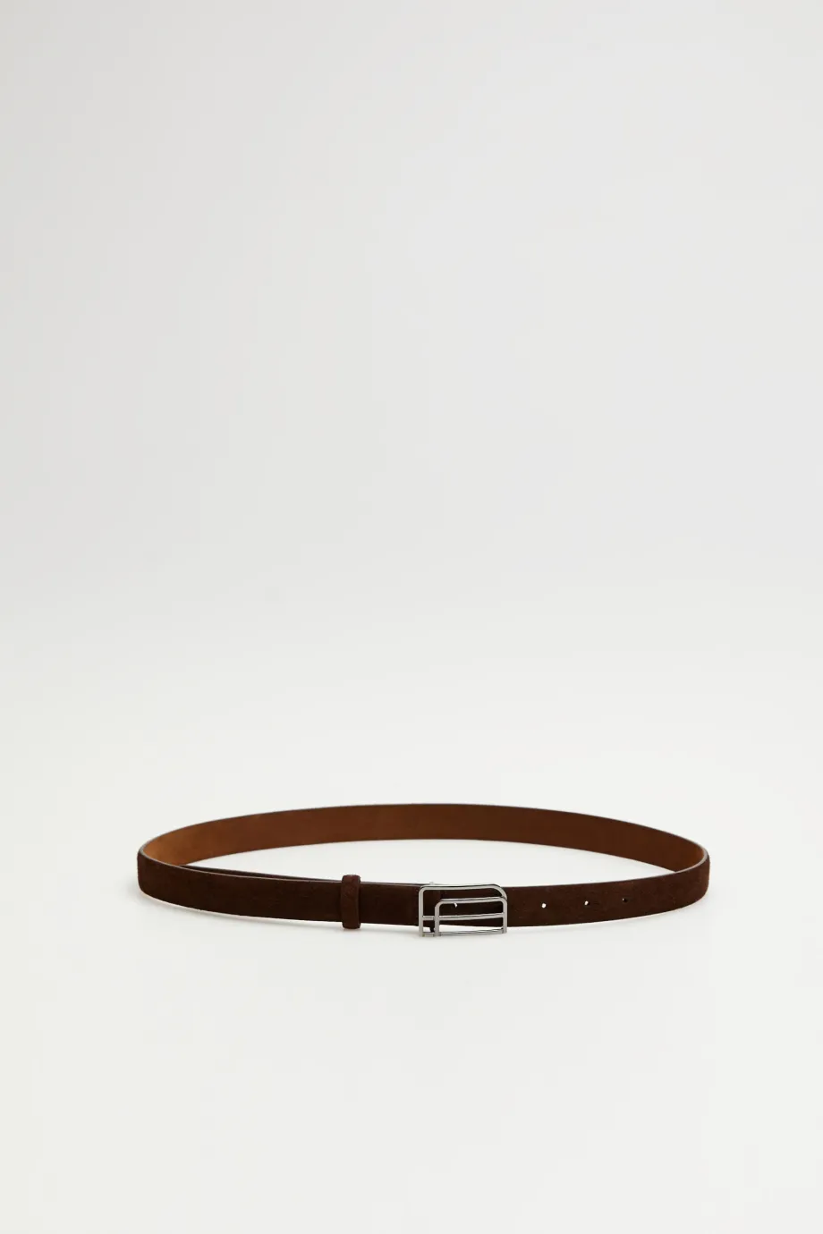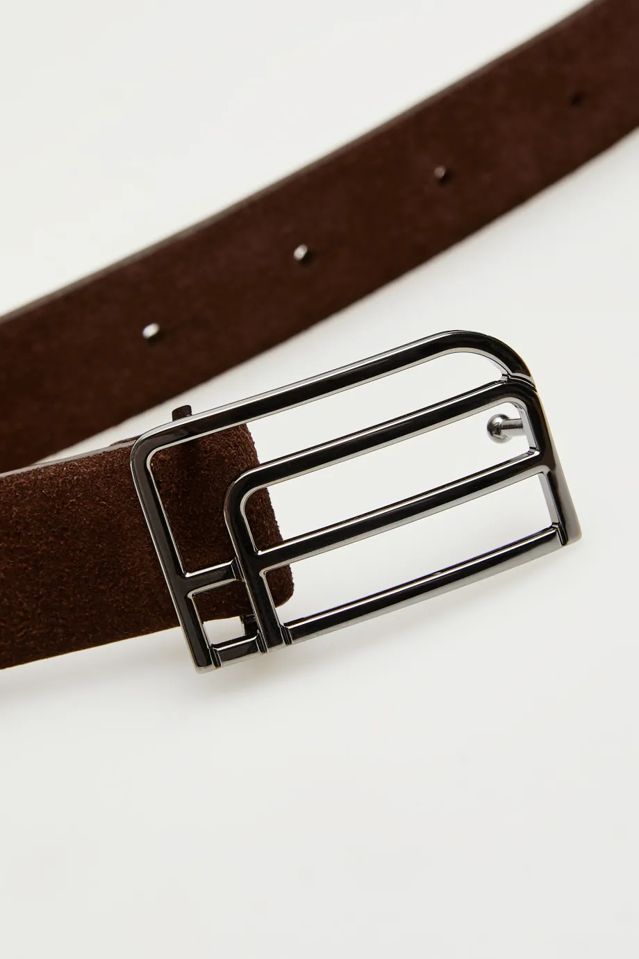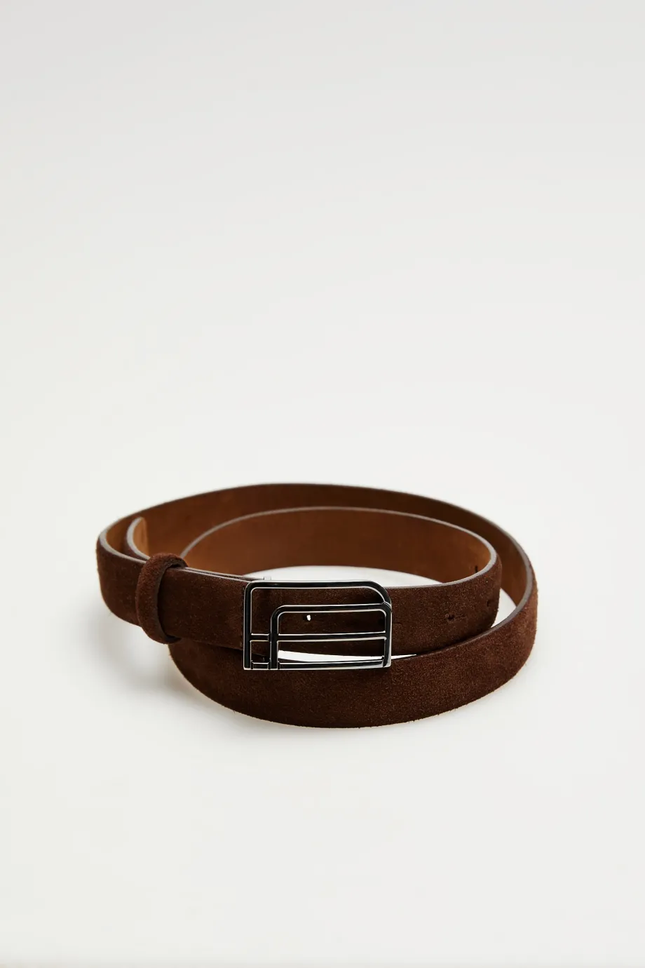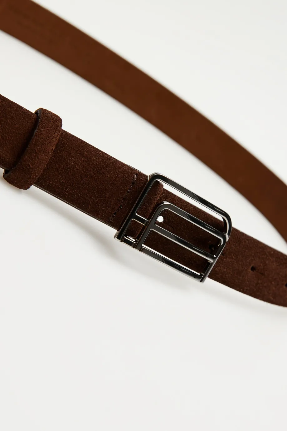 - Cienki pasek z brązowej skóry zamszowej