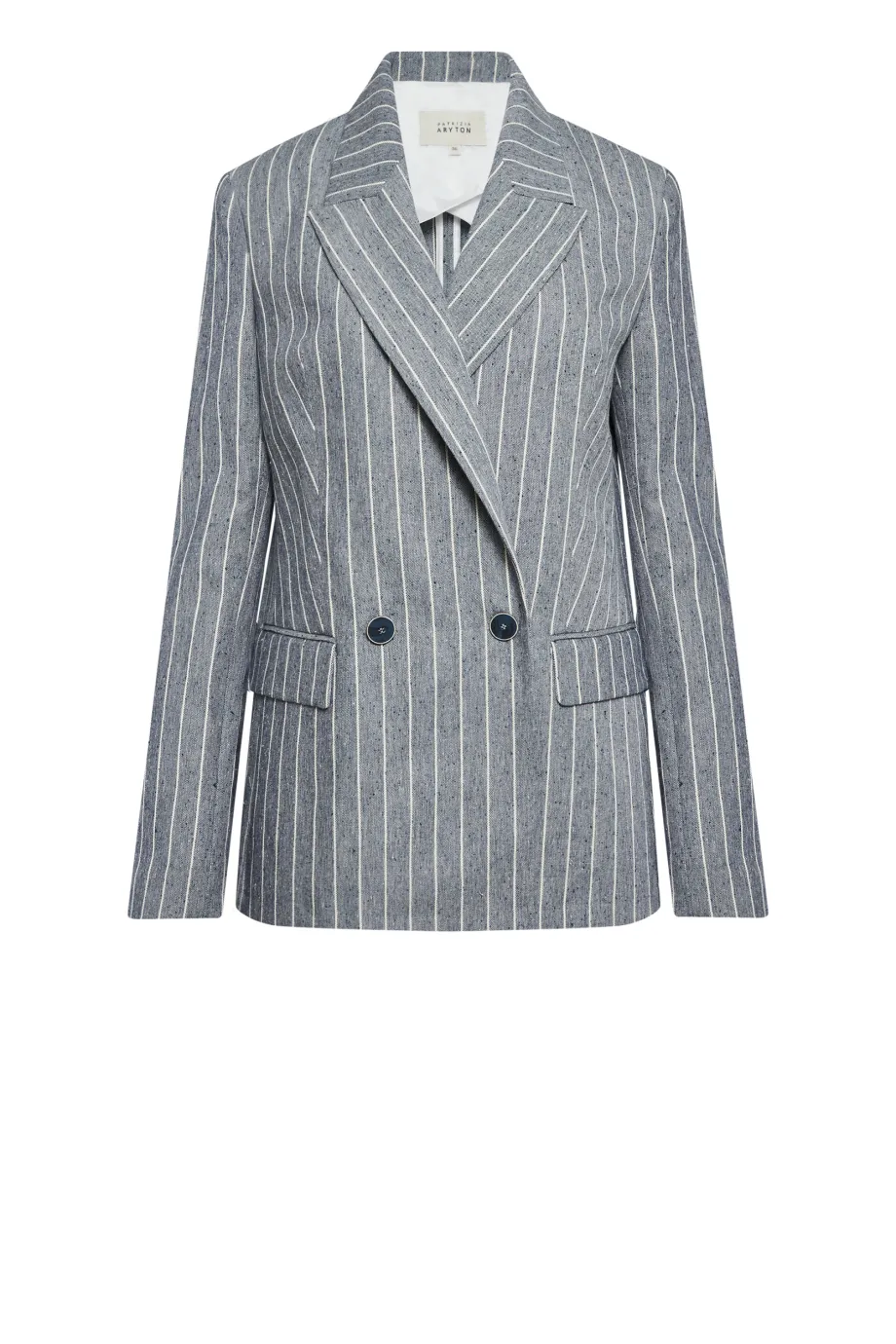 Szary żakiet w paski Patrizia Aryton podkreśla ramiona dzięki zastosowaniu triku z większymi poduszkami. Na ich zakończeniach znajdują się guziczki - mniejsza wersja tych, które służą za zapięcie marynarki. Także wewnątrz ubrania mamy guzik z naturalnego orzecha corozo do utrzymania właściwej pozycji stroju na ciele. Kołnierz, kieszenie z klapkami i tylne rozcięcie to detale typowe dla formalnych żakietów, a dekoracyjny piping od strony wewnętrznej jest wyrazem naszej najwyższej troski o Twój komfort i wrażenia estetyczne.