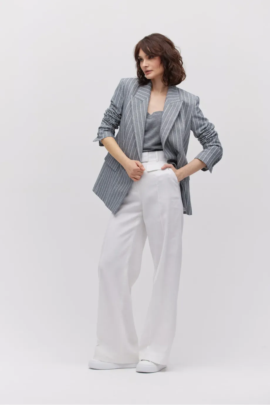 Szarość żakietu wspaniale komponuje się z innymi tonami popielu oraz każdą barwą podstawową. W tym sezonie postaw też na zestawianie jej z pastelami, np. hitowym kolorem panna cotta lub błękitem. Koniecznie wypróbuj wszystkie sposoby noszenia marynarki, np. w formie rozpiętej i z podwiniętymi rękawami. Zaskoczy Cię wygoda, którą gwarantuje mistrzowsko dobrany materiał.