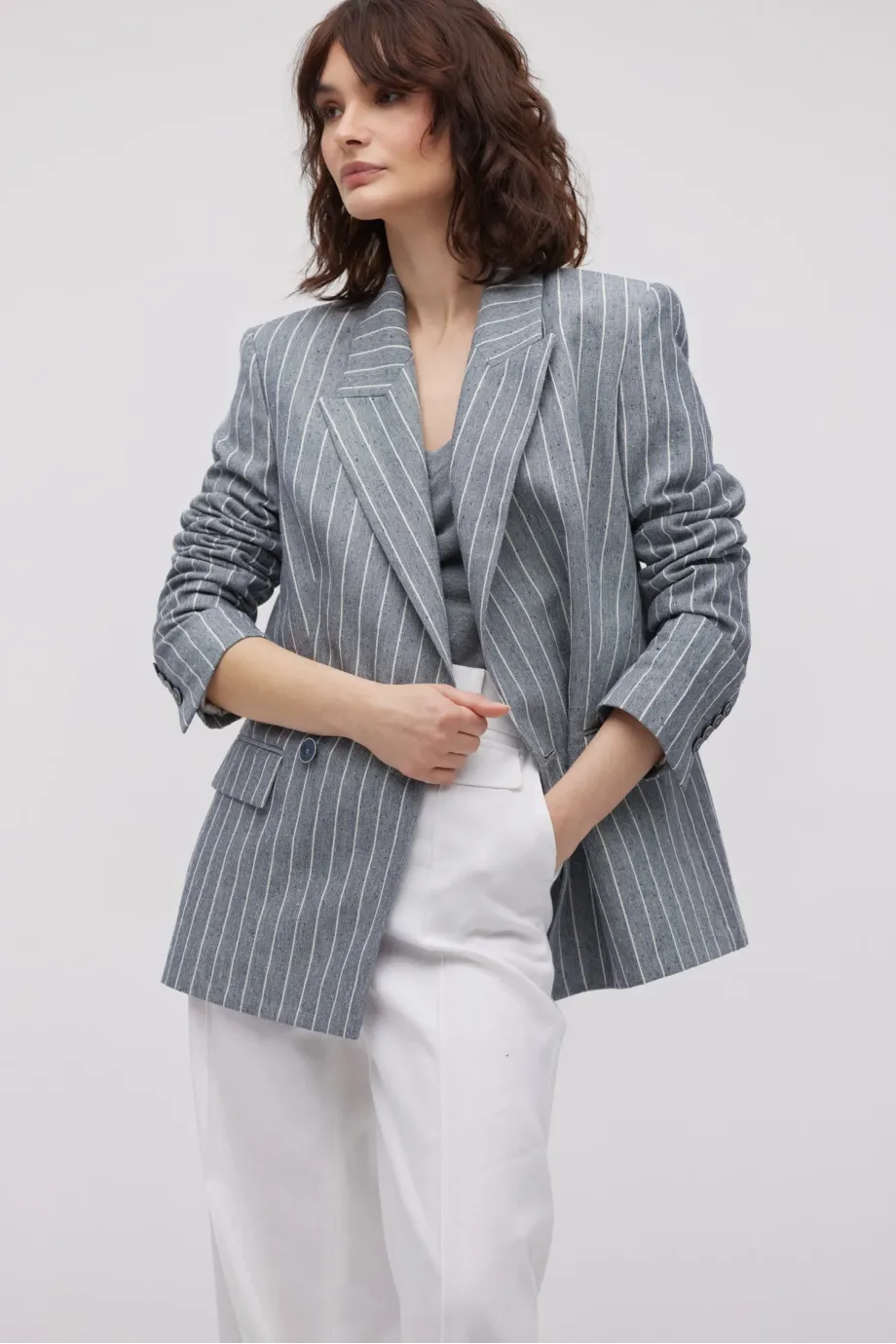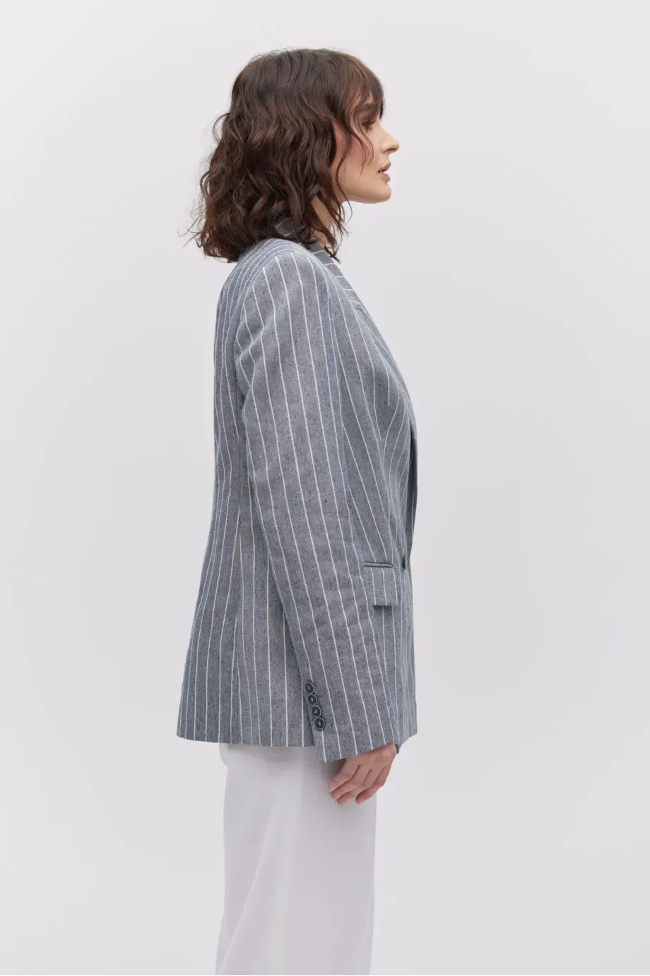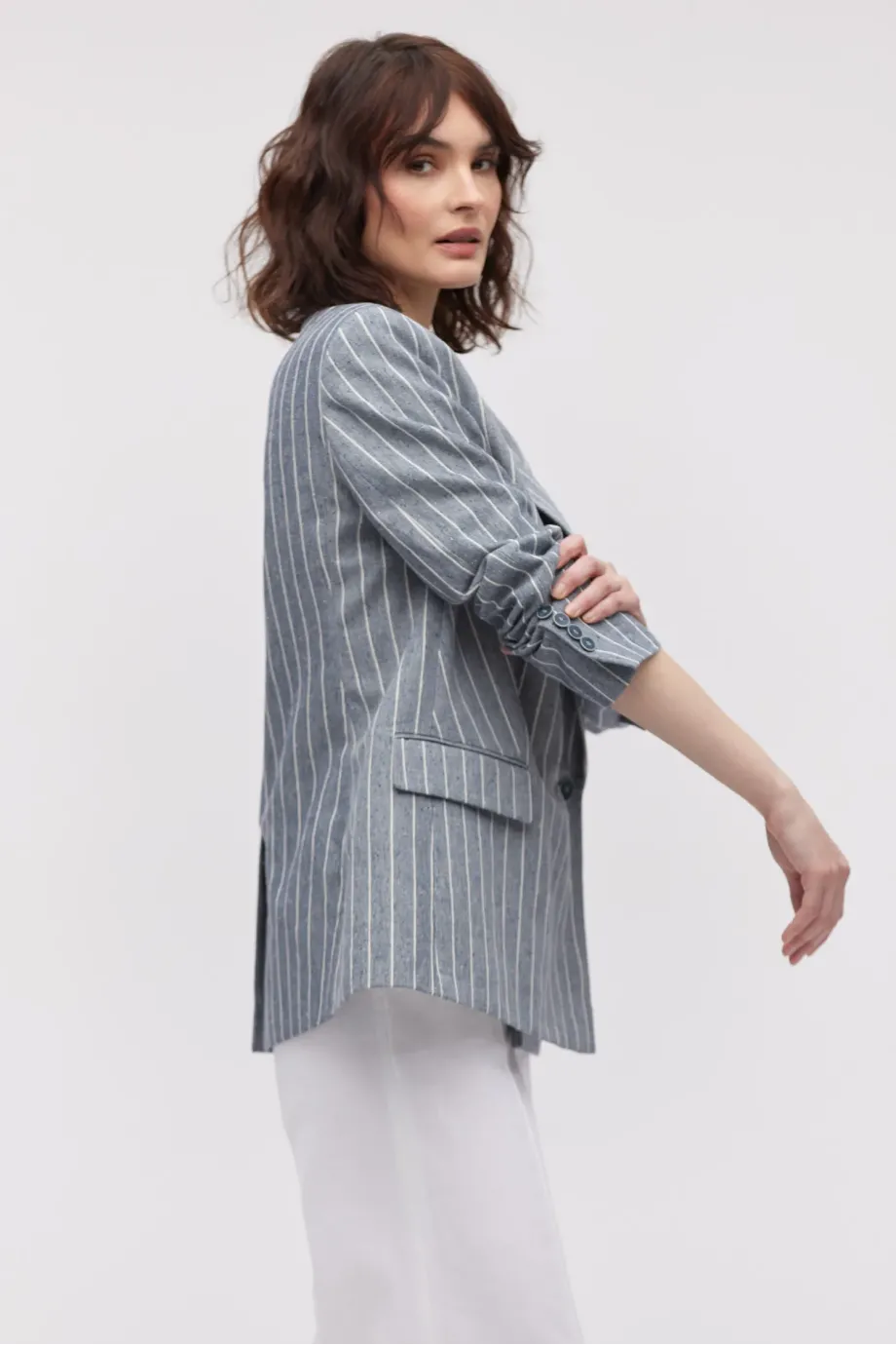 - Dwurzędowy żakiet z dodatkiem lnu, w paski/tenis, o delikatnie taliowanym kroju.