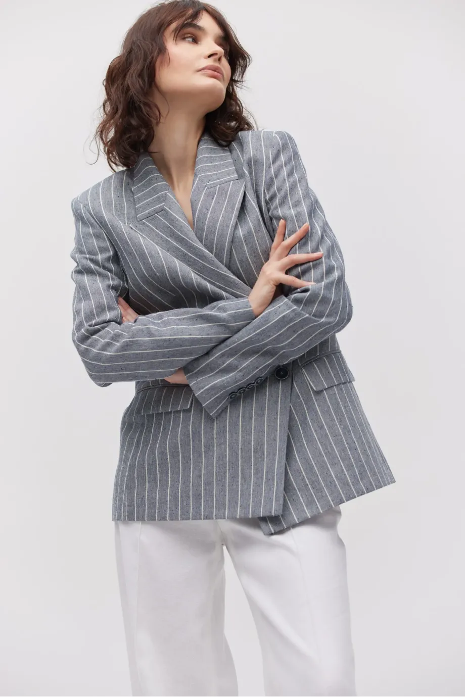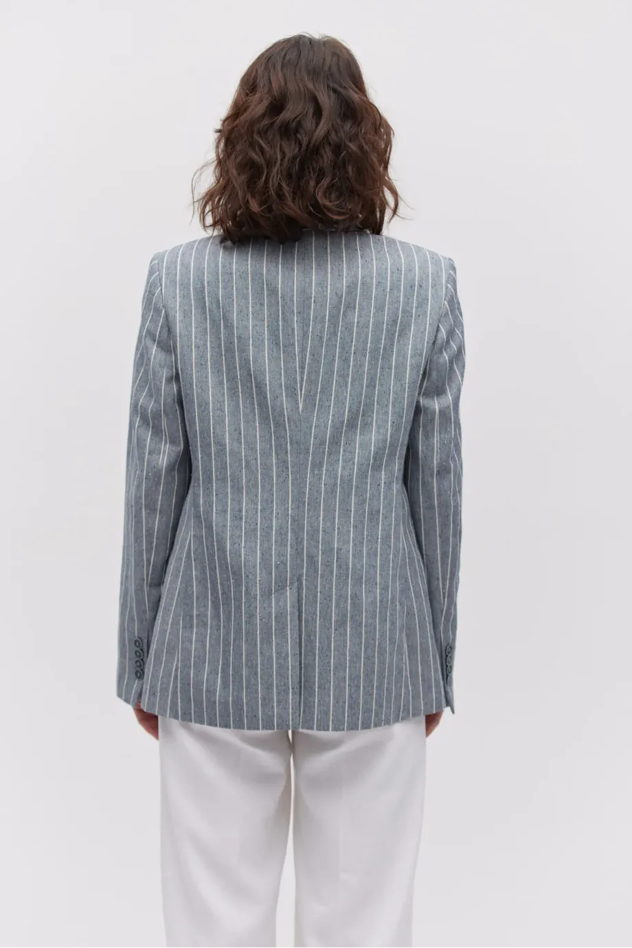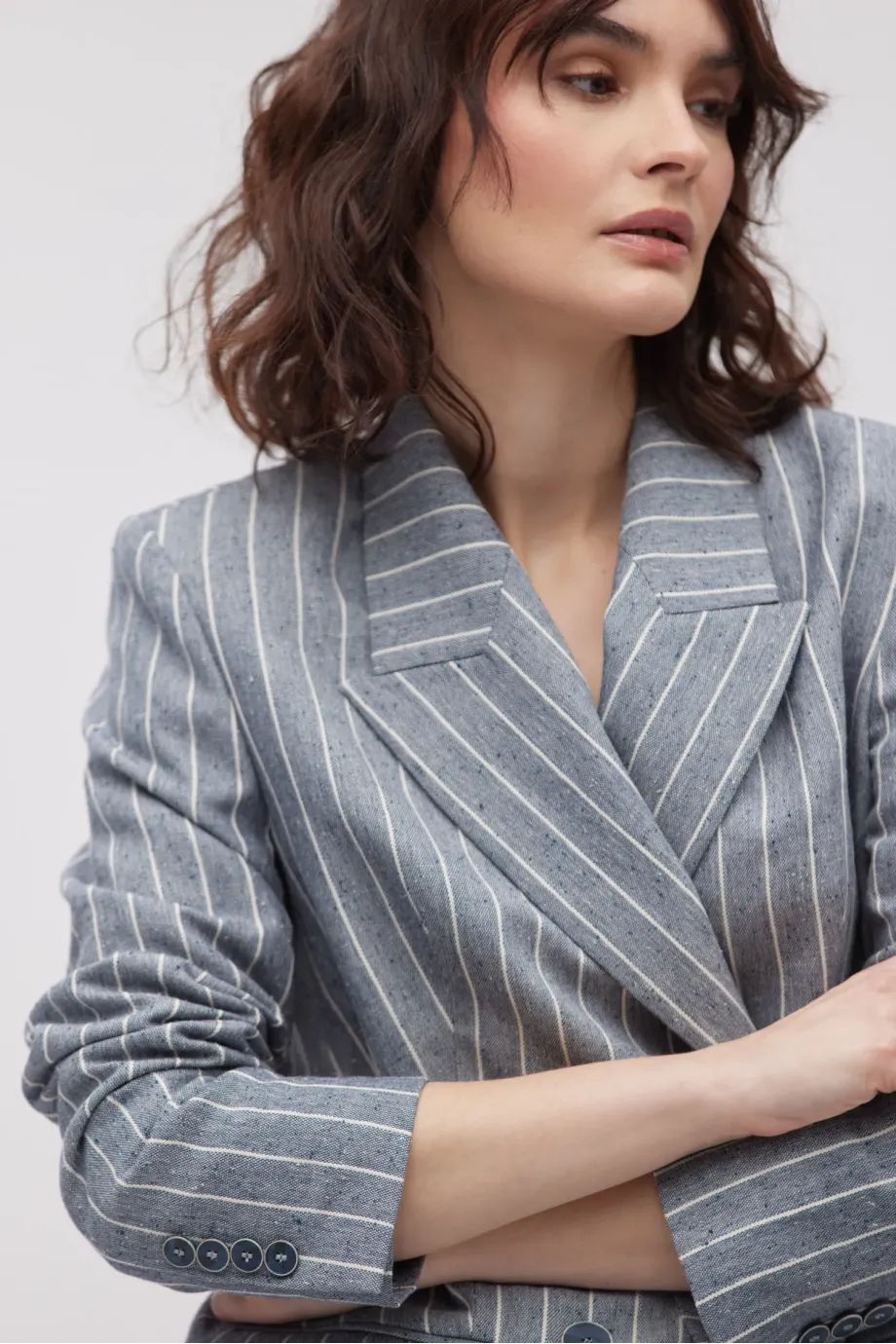 - Dwurzędowy żakiet z dodatkiem lnu, w paski/tenis, o delikatnie taliowanym kroju.