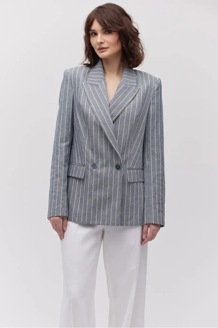 Szary dwurzędowy żakiet w paski