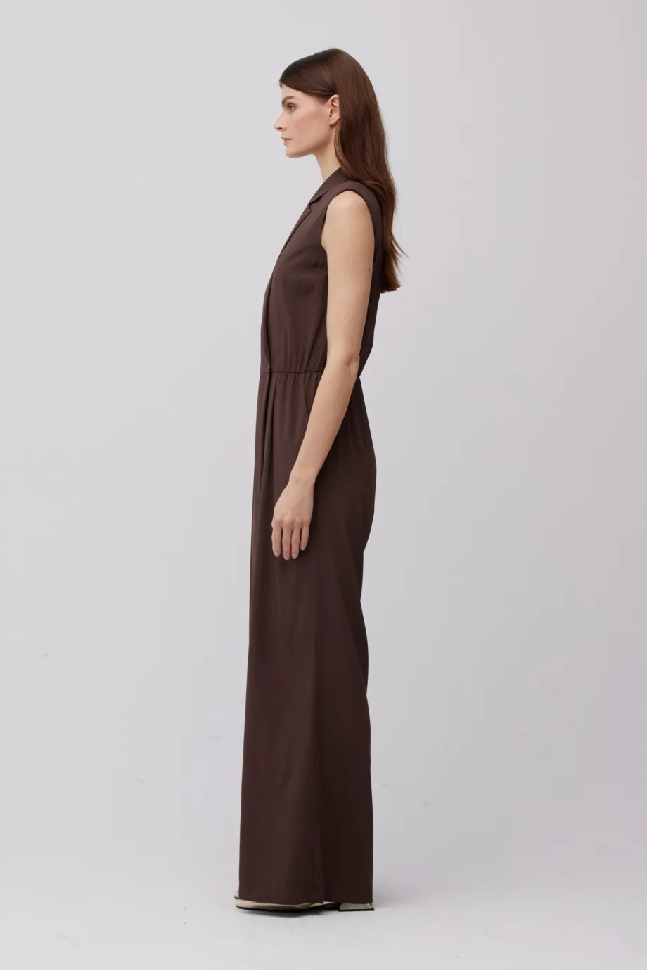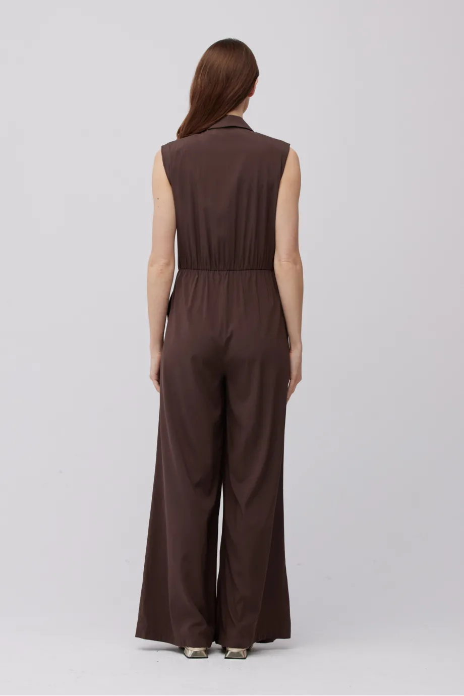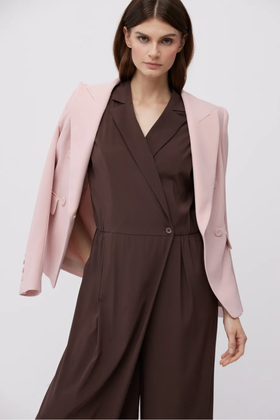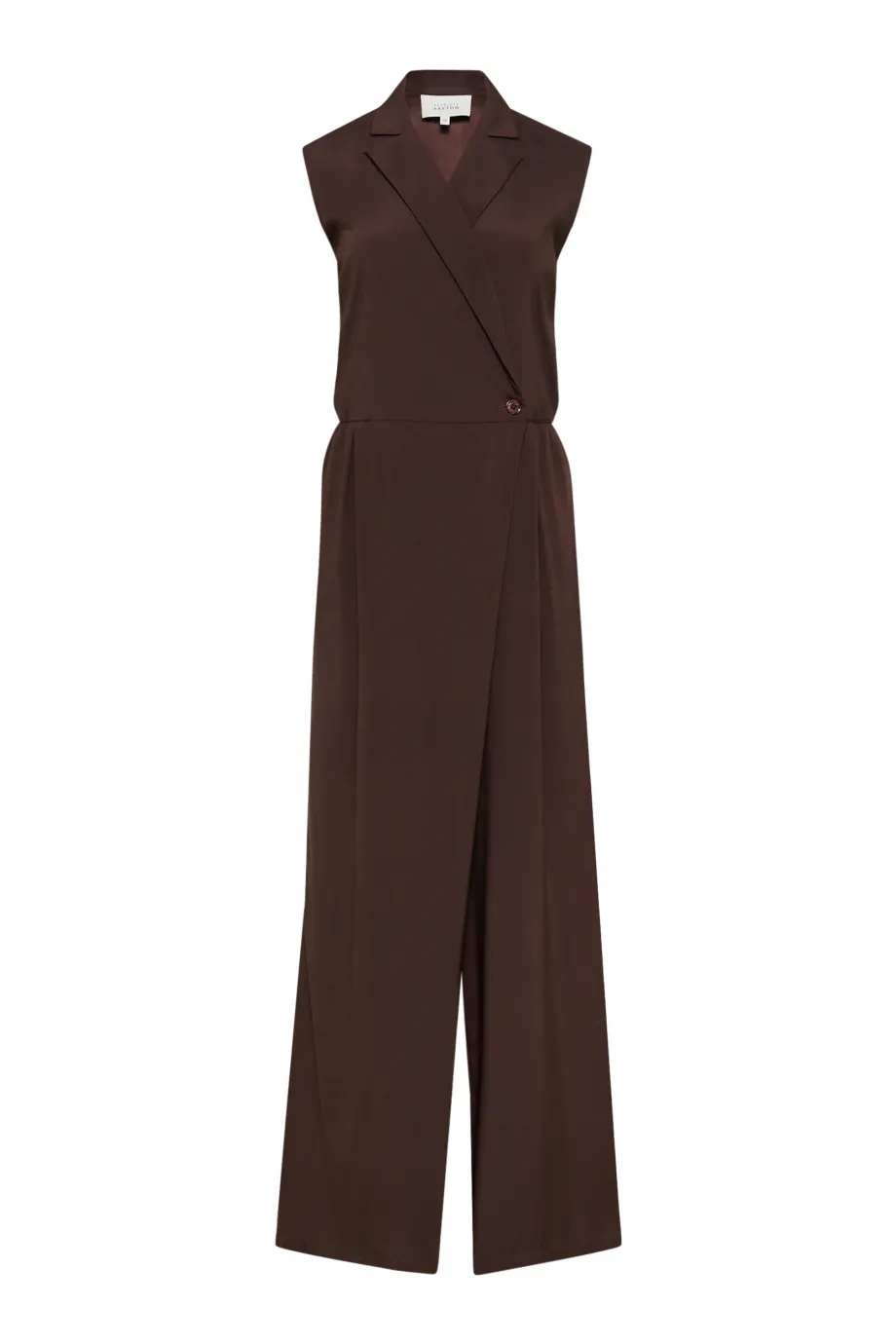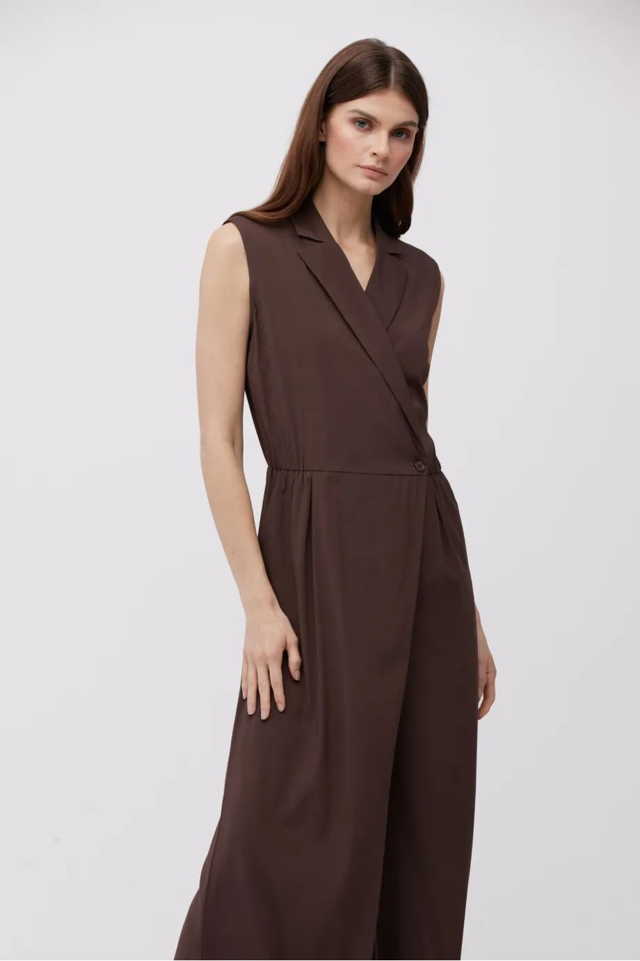 Jedwabny czekoladowy kombinezon z szerokimi nogawkami