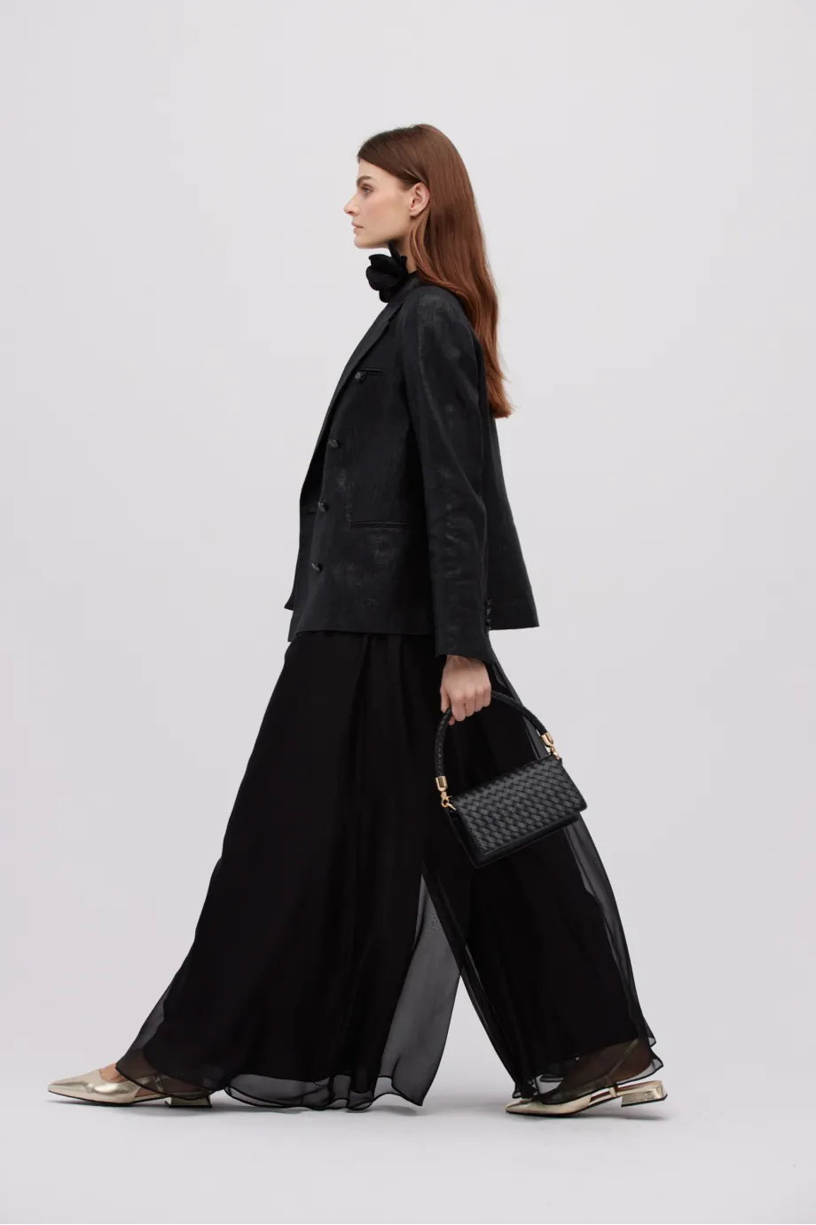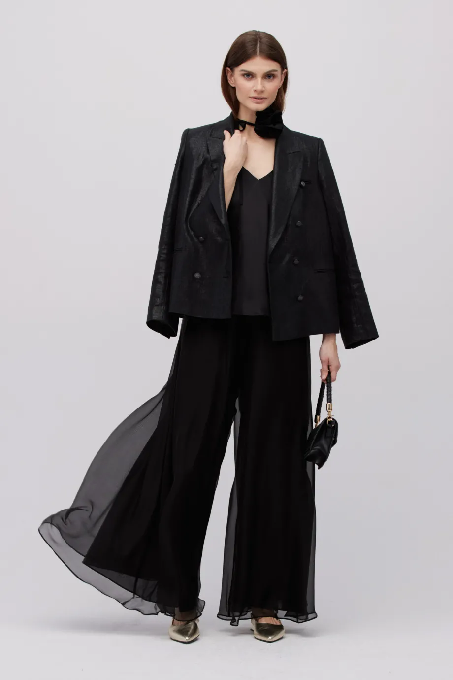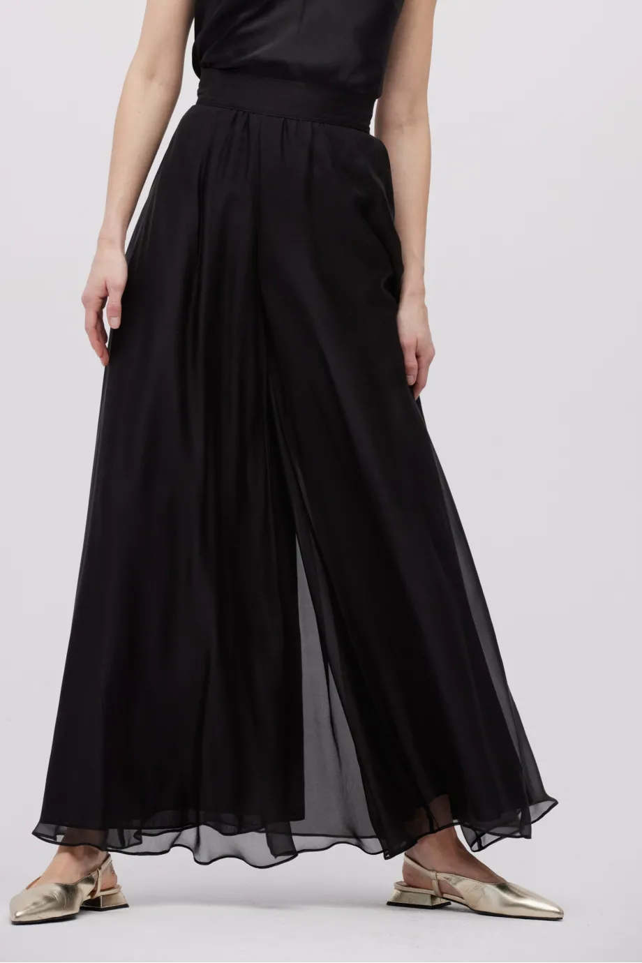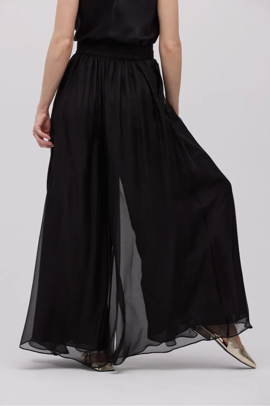 - Spodnie wykonane z wysokogatunkowego jedwabiu w czarnym kolorze