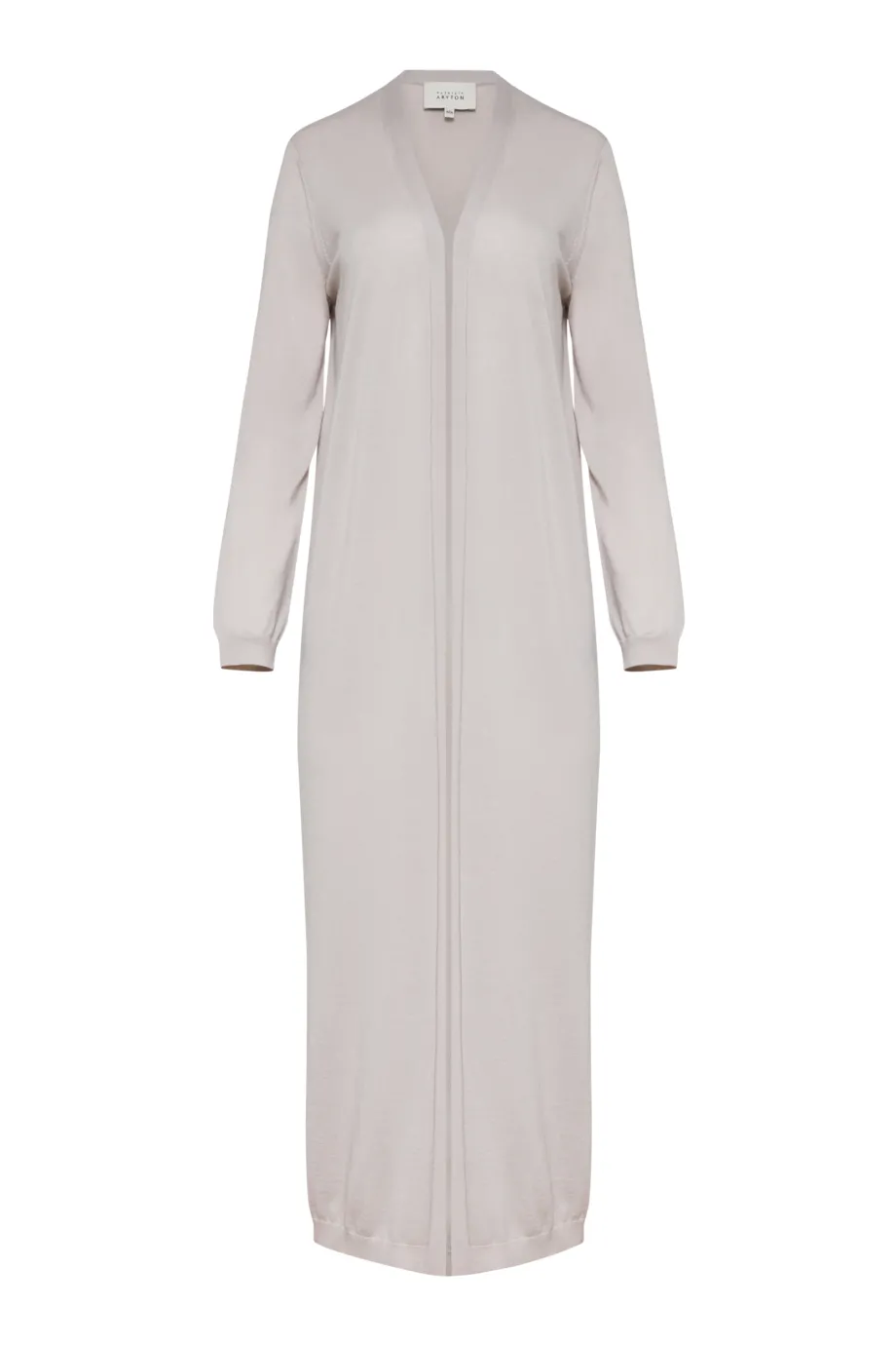 Popielaty cienki kardigan damski, długi do łydek, kupisz w rozmiarach 32/34 - 44/46. Skład materiału to 100% najwyższej jakości wełny od sprawdzonego dostawcy. Surowiec odznacza się niezrównanymi właściwościami termoizolacyjnymi, tzn. chroni przed chłodem i przegrzaniem. Wełna jest ekologiczna, odporna na wnikanie plam i zapachów, naturalnie piękna, a pielęgnacja zgodna z zaleceniami na metce gwarantuje nieskazitelność materiału na lata.