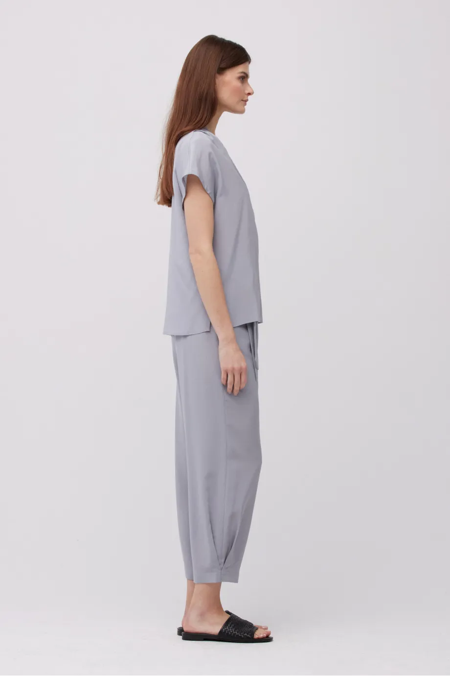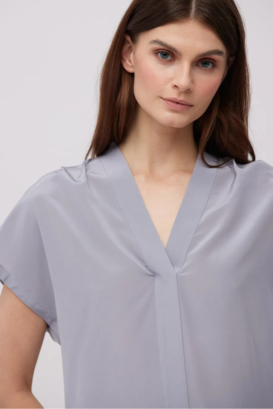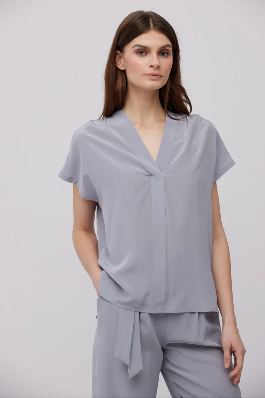 - Szara bluzka z jedwabiu o prostej, luźnej formie