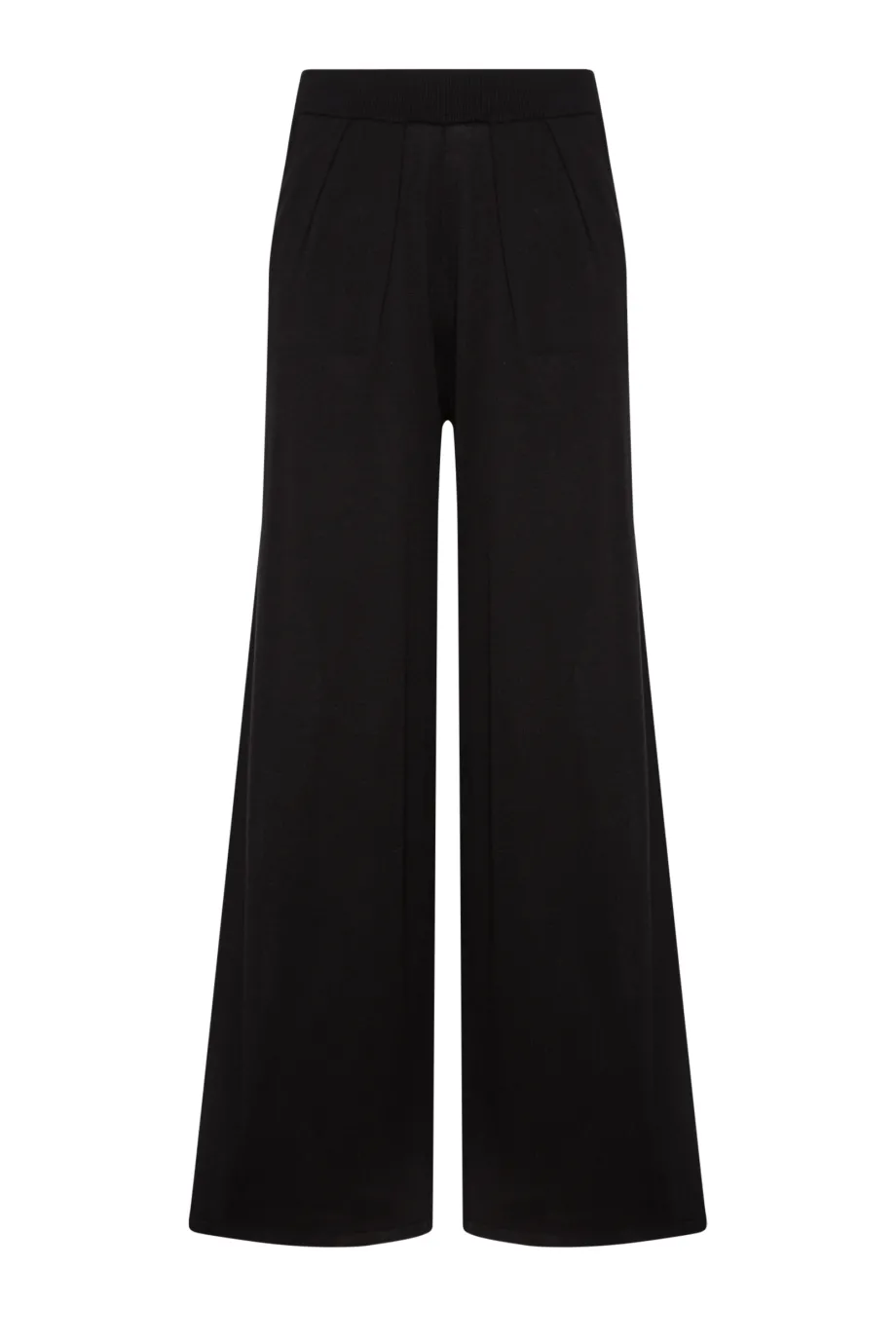 - Szerokie spodnie z dzianiny z jedwabiem, wykonane na maszynie 14 GG w splocie single jersey