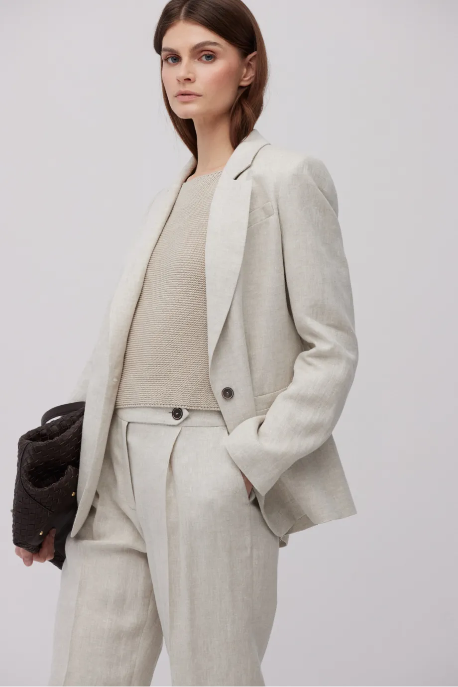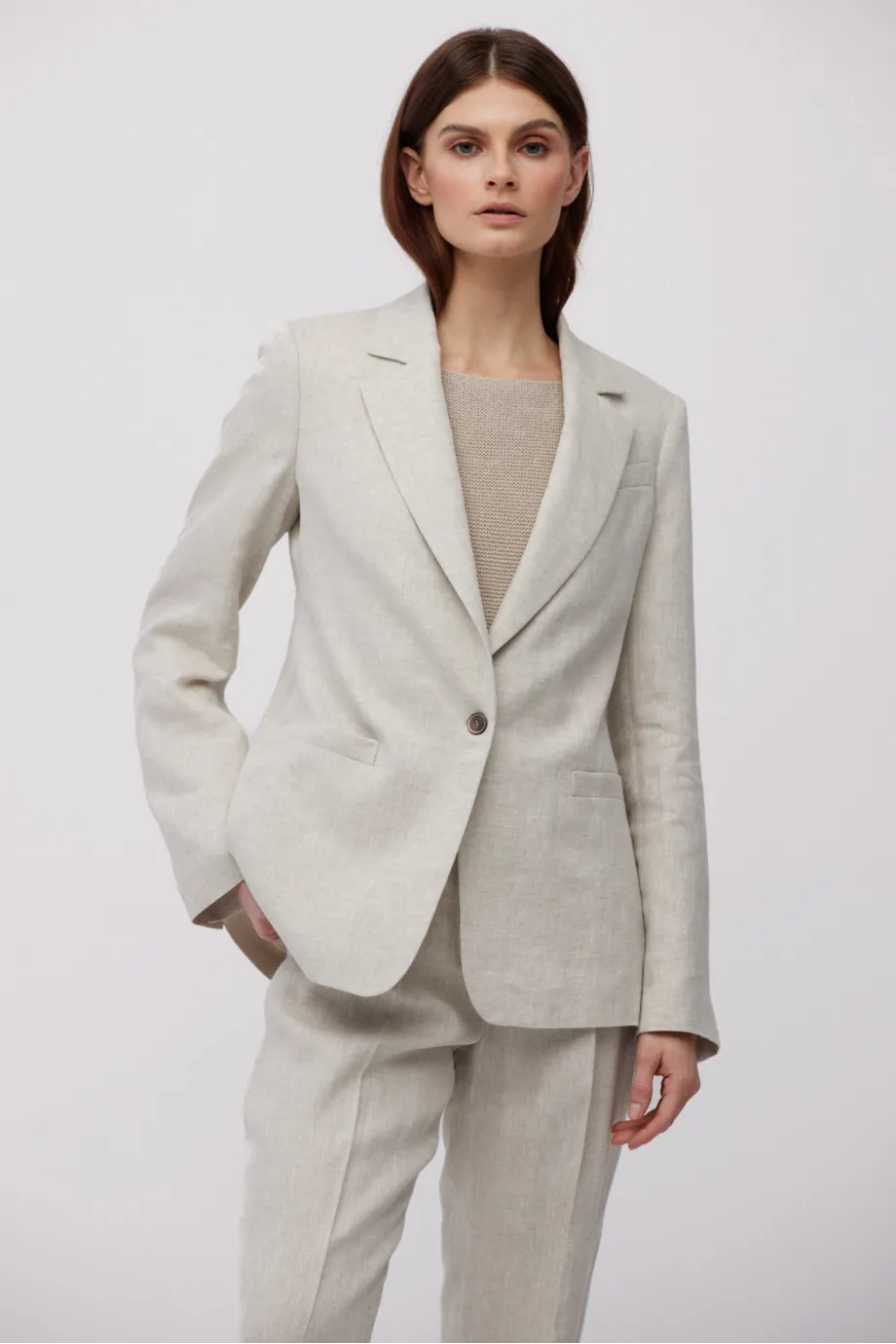 - Jednorzędowy, zapięcie na guzik z macicy perłowej