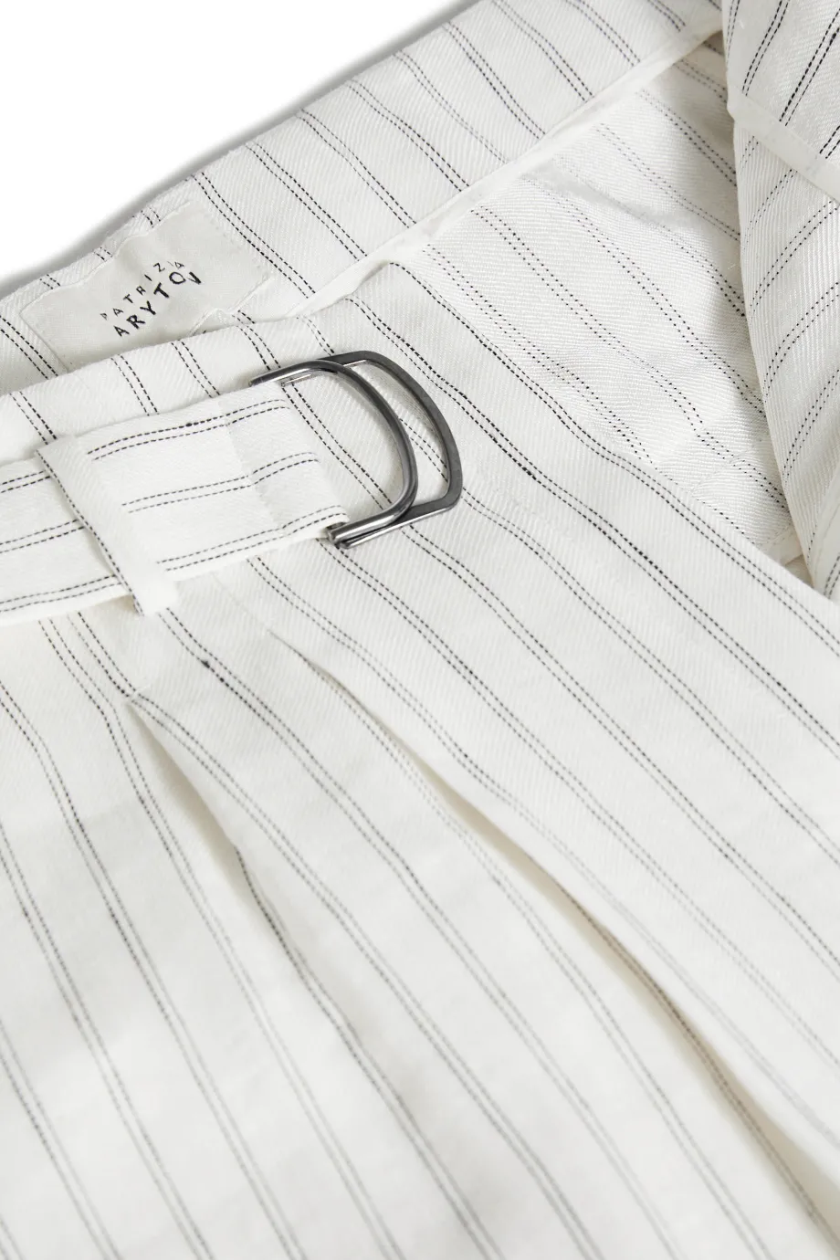 Letnia kapsuła Summer in the City to ukłon w stronę miękkich, zwiewnych form i szlachetnych materiałów. Te eleganckie spodnie lniane damskie, szerokie, w odcieniu ciepłej bieli w kontrastowy prążek to propozycja dla kobiet, które nawet w upalnych miesiącach nie rezygnują z manifestowania swojej klasy. Model stanowi bazę dla stylizacji, w których liczy się zarówno komfort, jak i wyrazista linia. Genialnie spisują się jako składnik outfitów z czerwoną koszulą, jedwabnym topem lub lekkim żakietem z tej samej kolekcji, ale nie tylko!