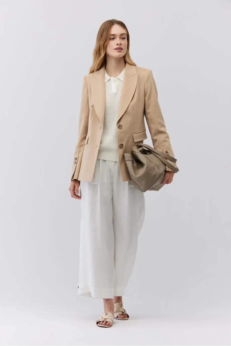 Letnia kapsuła Altro została stworzona z myślą o pełnym słońcu i intensywnych kolorach lata. Linia łączy wyraziste formy z naturalnymi materiałami. Białe spodnie z szerokimi nogawkami są jedną z najciekawszych propozycji tej kolekcji. Lniana tkanina o cienkim splocie zapewnia przewiewność i swobodę ruchów, a neutralny odcień śmietankowej bieli pozwala budować wokół nich zarówno klasyczne, jak i bardziej odważne stylizacje. To model dla kobiet, które lubią mieć wybór i potrzebują rzeczy, które pasują do zmiennego rytmu letnich dni.