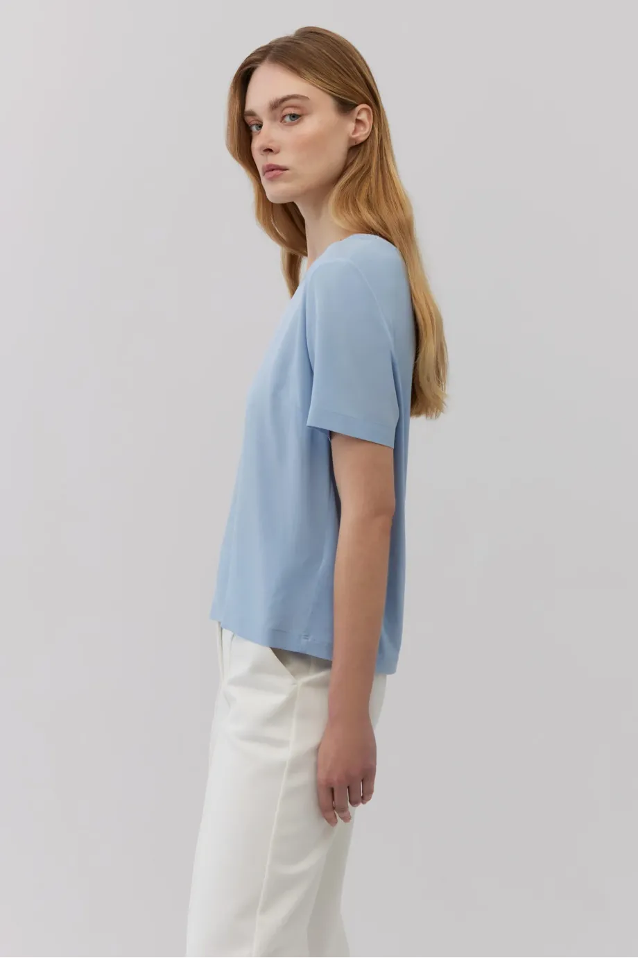 Błękitna bluzka z krótkim rękawem i okrągłym dekoltem