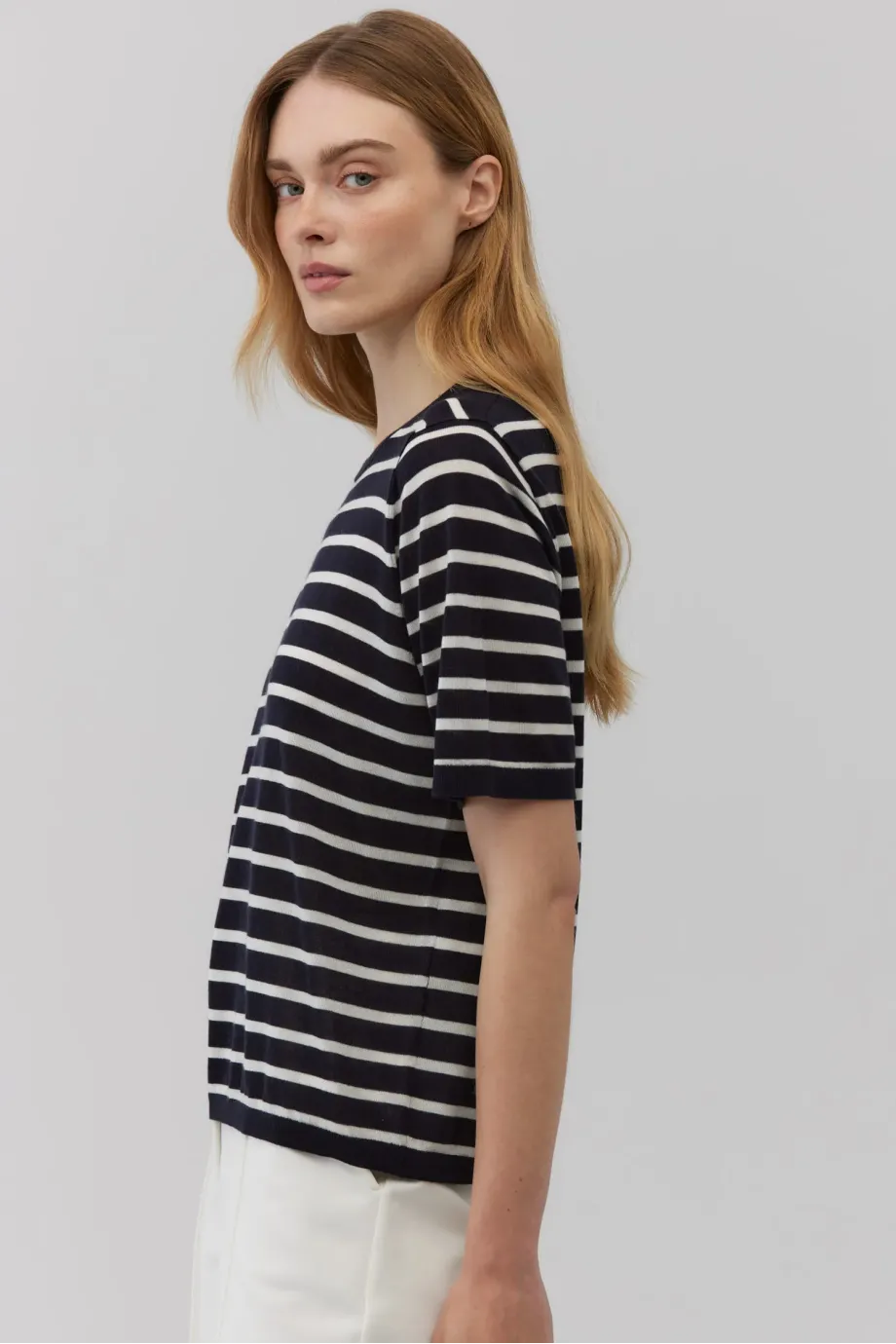 T-shirt w biało granatowe paski z lyocellu i kaszmiru