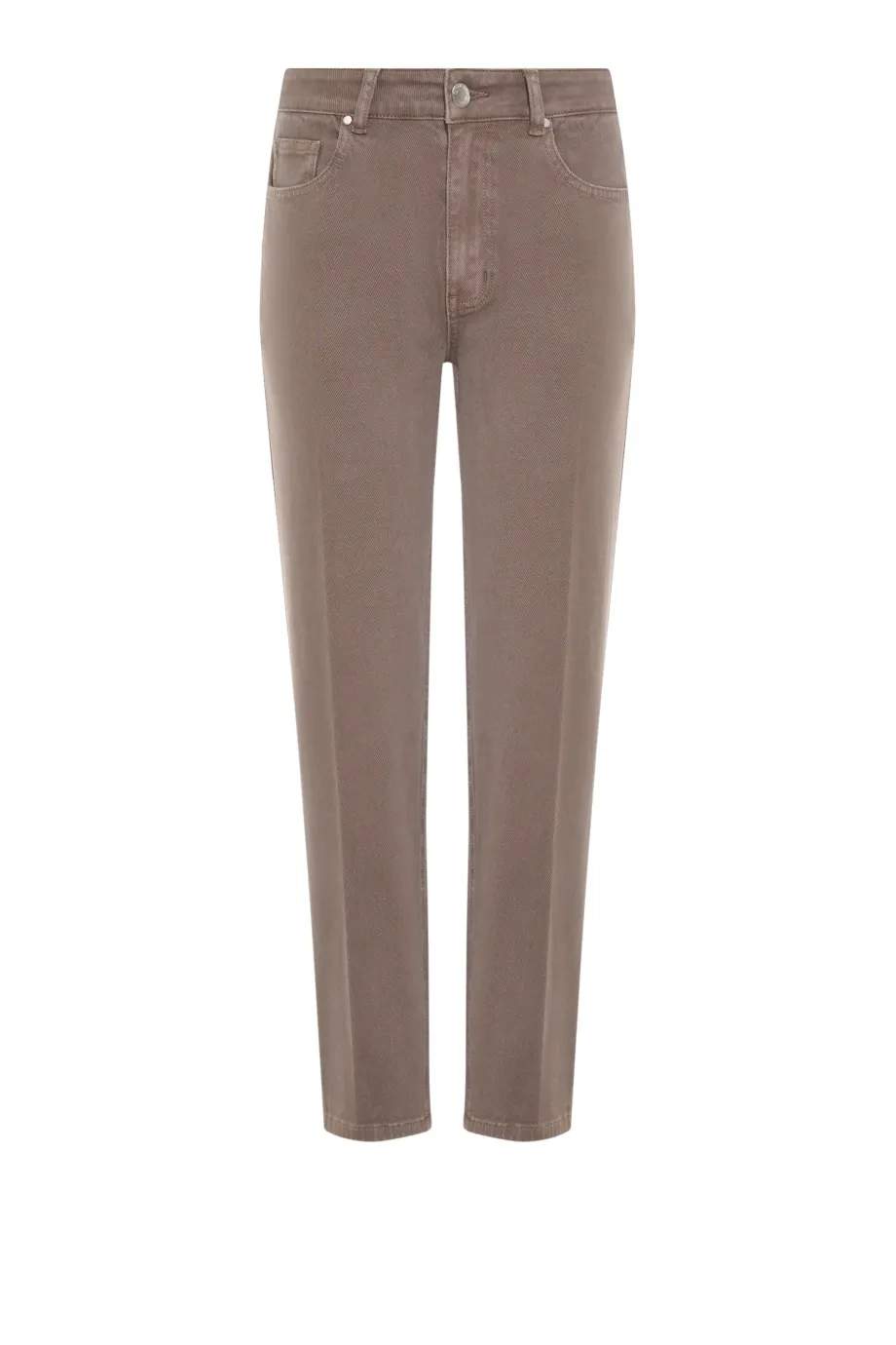 Jeansy o fasonie mum fit – lekko zwężane do dołu. Klasyczny pięciokieszeniowy krój. Wysoki stan. Zapięcie na suwak i metalowy guzik. Wykonane z bawełny z dodatkiem elastanu– miękkie i komfortowe w noszeniu. Kolor brązowy.
