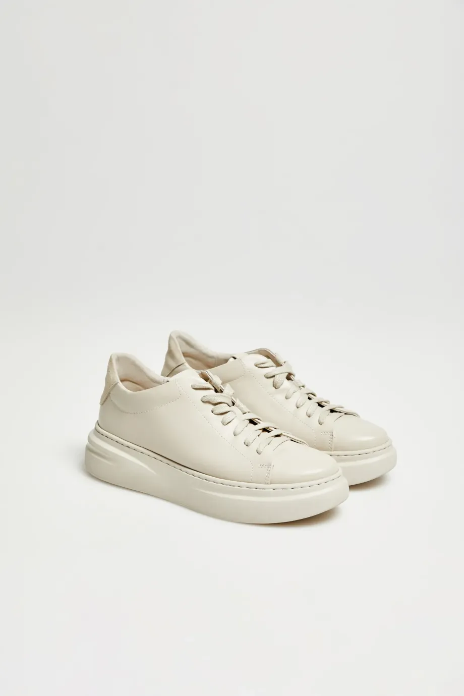 Sneakersy na platformie. Skóra naturalna w odcieniu beżu. Klasyczne wiązanie. Miękka wkładka. Ręcznie wyprodukowane w Polsce.