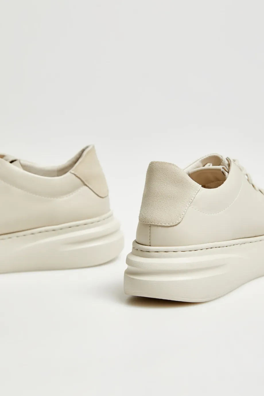 Beżowe sneakersy skórzane na platformie