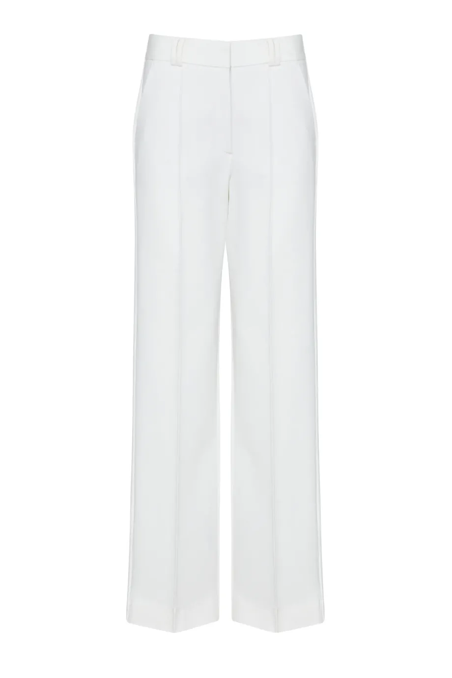 Białe spodnie z szeroką nogawką i kantem