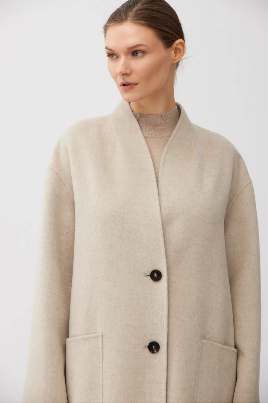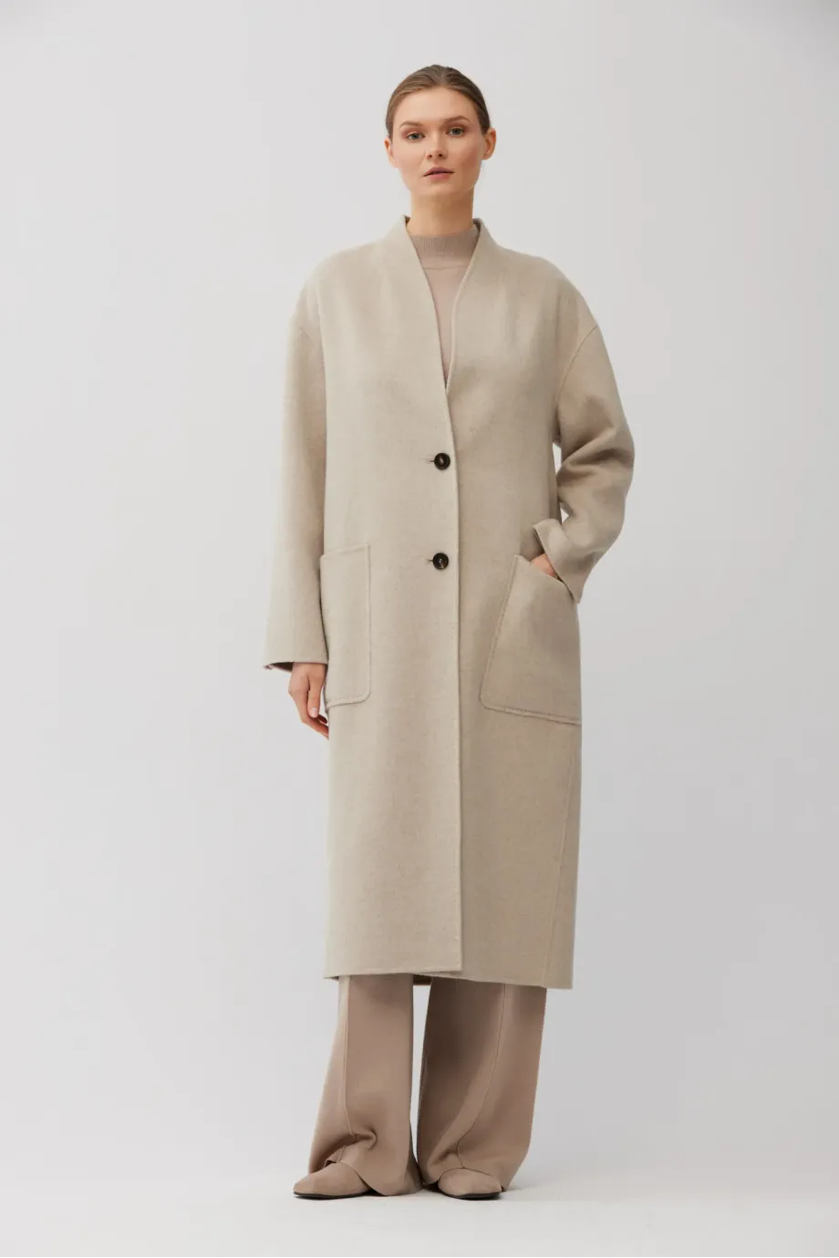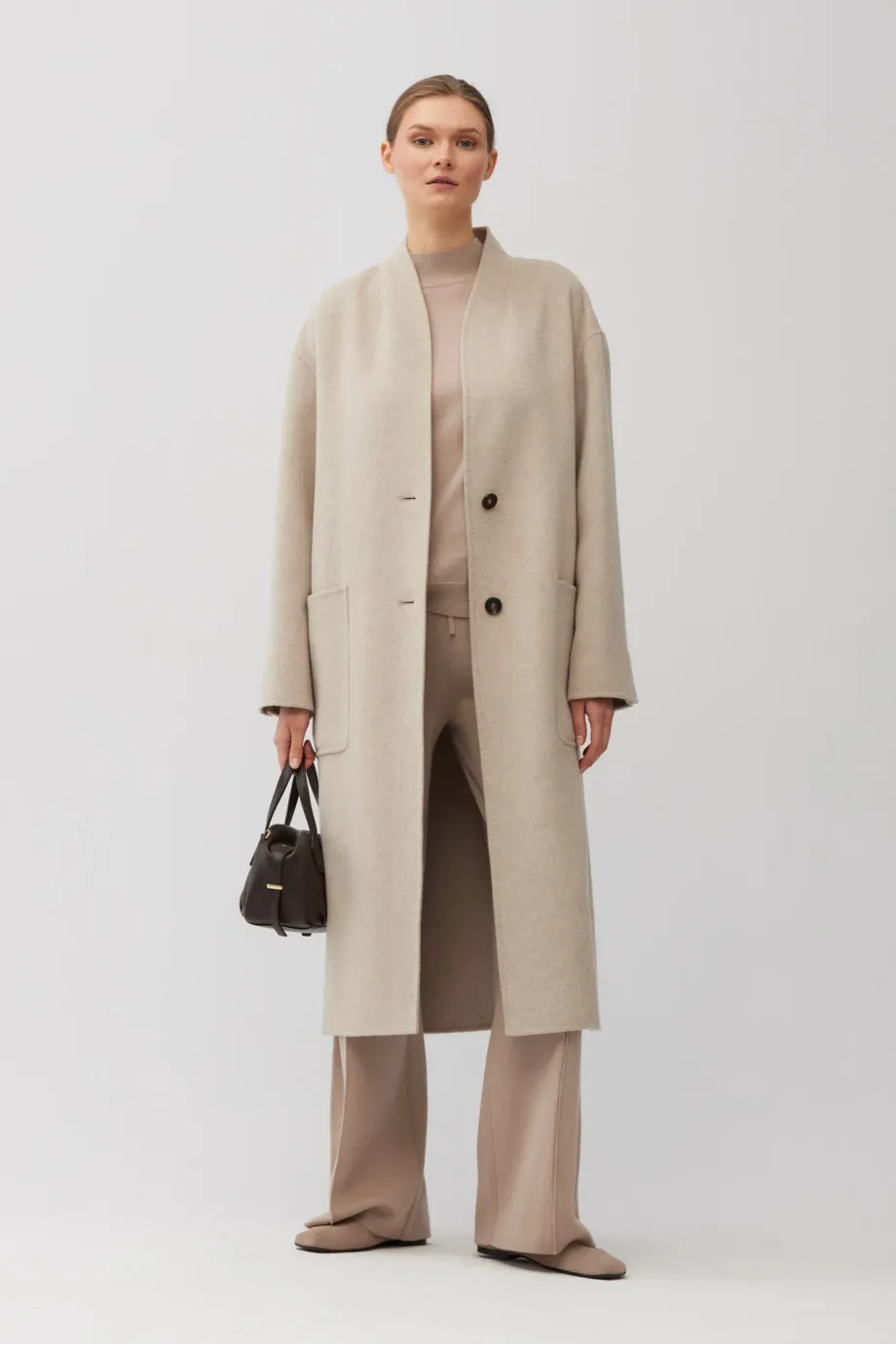 Beżowy płaszcz z wełny i jedwabiu doubleface