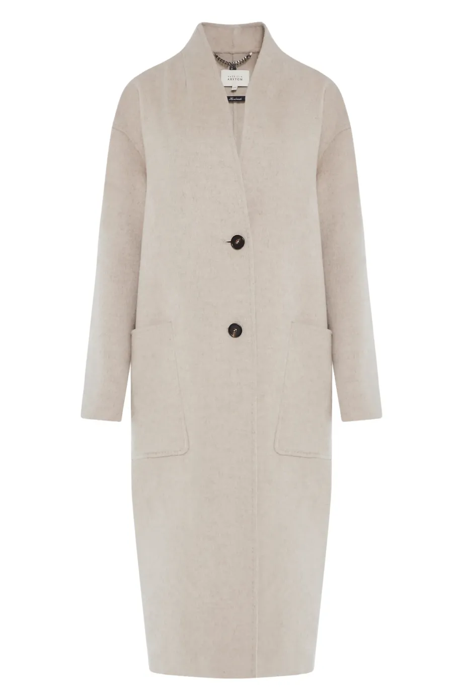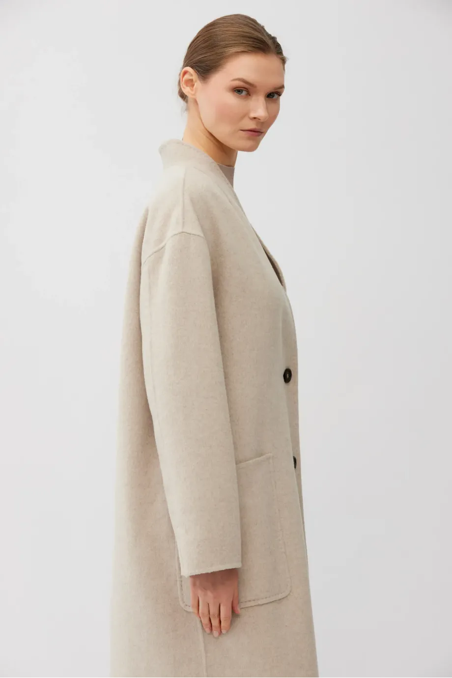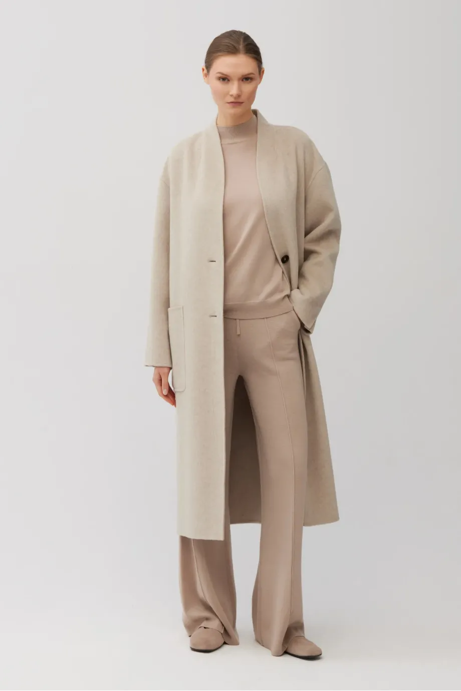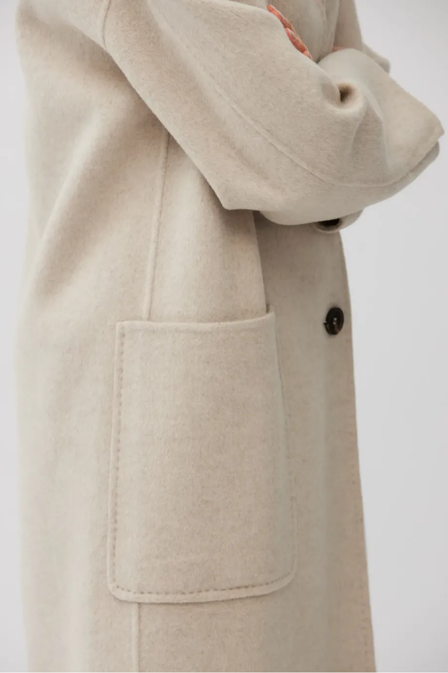 Beżowy płaszcz z wełny i jedwabiu doubleface