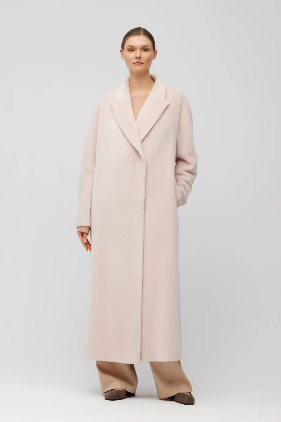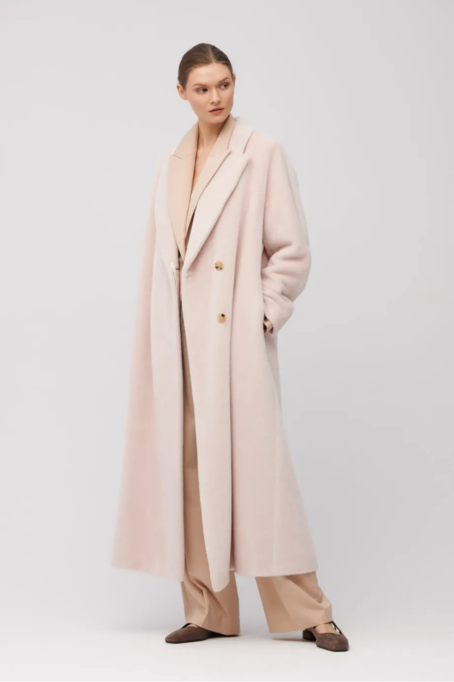 Dwurzędowy prosty płaszcz z baby suri alpaki