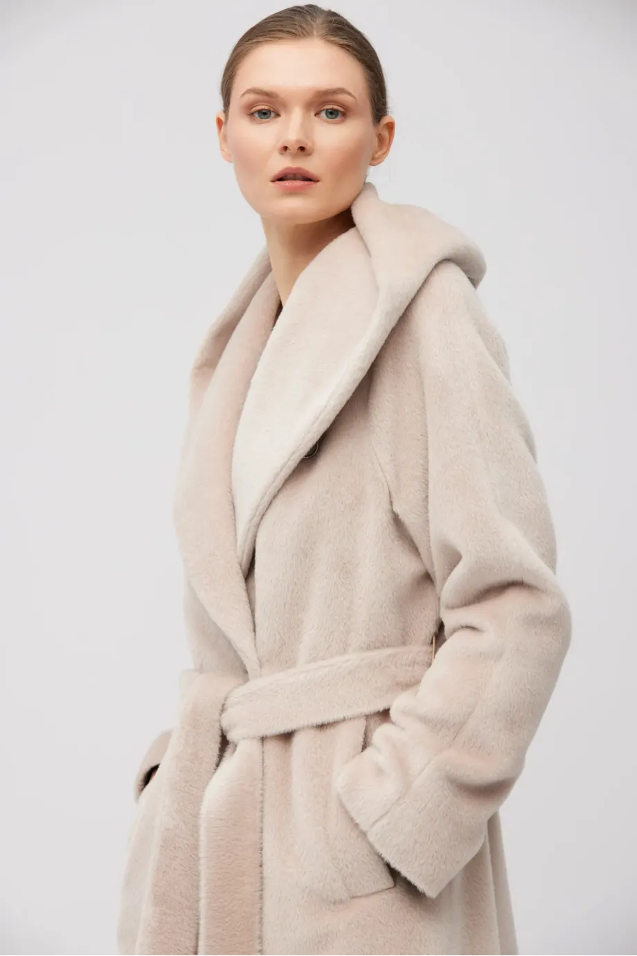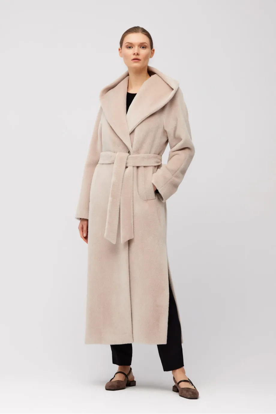 Płaszcz maxi z baby suri alpaki z kapturem